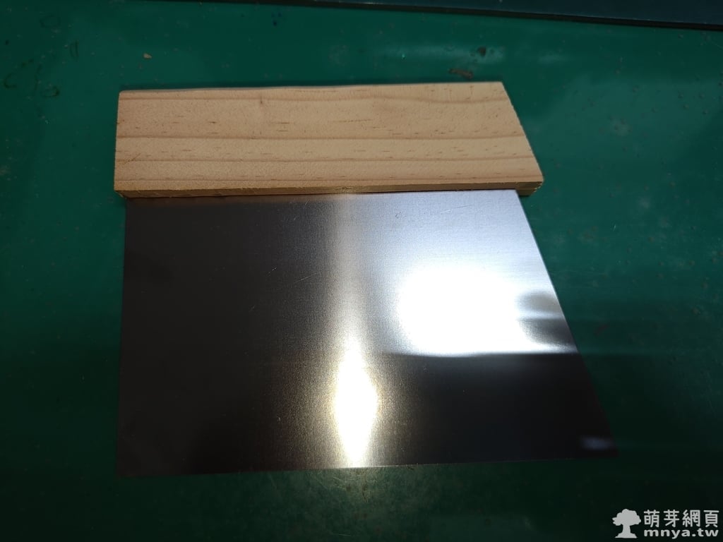 ▲ 翻到背面可以看到不鏽鋼刀面在光線折射下展現出極佳的平滑度,這正是確保刮牆補土能達成完美平整度的關鍵。木製手柄經過細膩的磨光處理,觸感平順且不刺手,握持感遠勝於一般的廉價塑料柄。對於目前正忙於清理舊房間牆面的我來說,這種實打實的厚度與硬度,不僅能輕鬆應付各種修繕任務,也讓人感受到台灣在地生產工具的穩定品質。