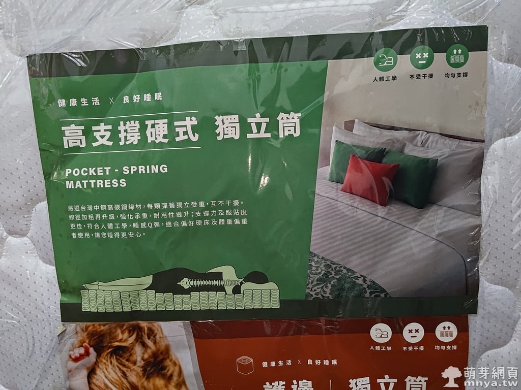 ▲ 這張標籤詳細介紹了高支撐硬式獨立筒的特色,強調其採用台灣中鋼的高碳鋼線材製作,不僅彈簧結構穩固且耐用,更能針對人體曲線提供精準的承托效果。其設計特別適合偏好硬度較高或者是體重較重的族群,能夠在翻身時保持互不干擾的靜音特性,讓睡眠過程更加安穩且不受影響。