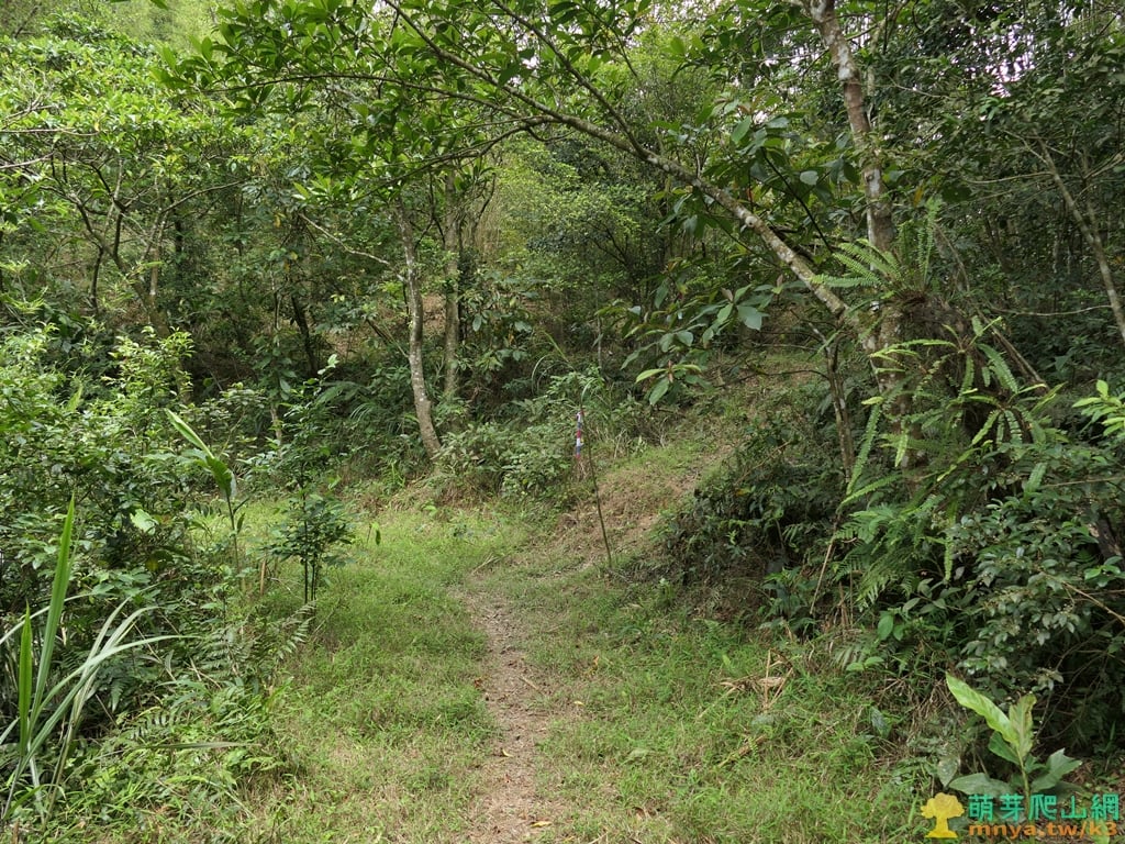 ▲前行山坡向上之前山徑轉右沿山腰邊,此段水管路都很平緩。