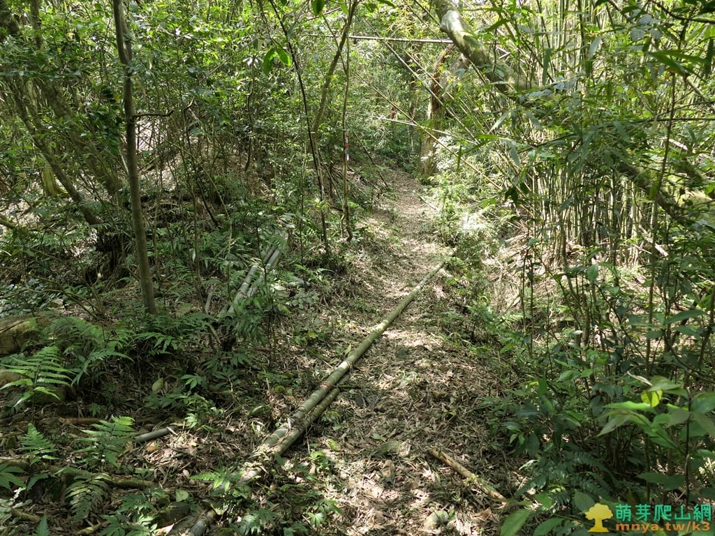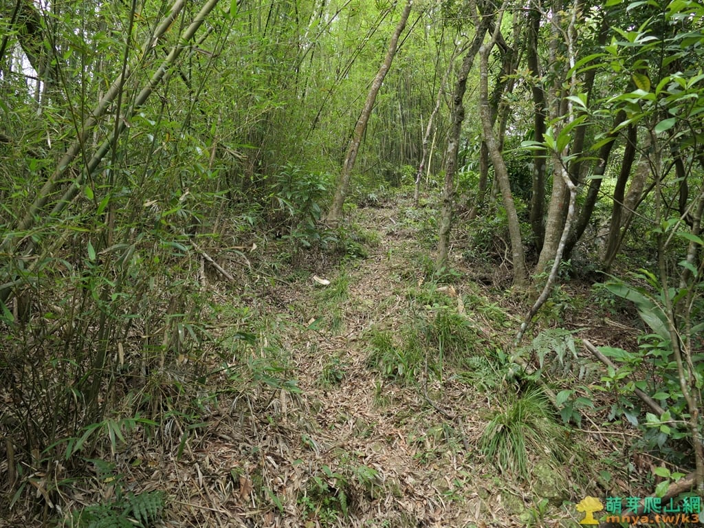 ▲陡上後沿稜左竹叢邊山腰路,至礁水坑山南峰前都是舊時的水管路,路基算是清楚明顯。