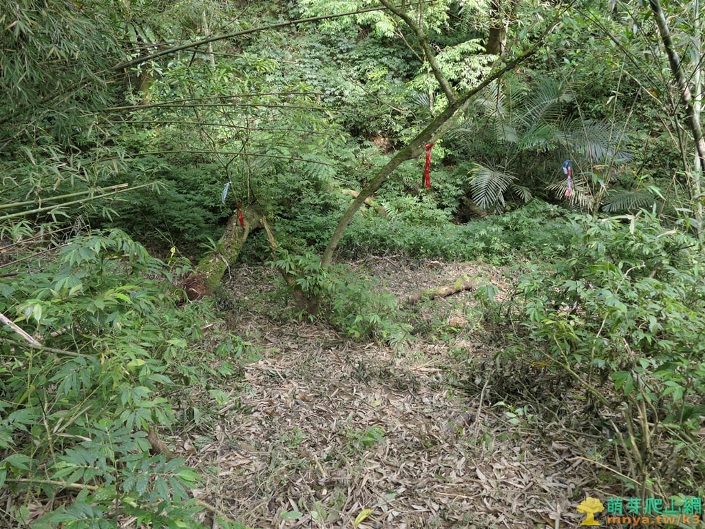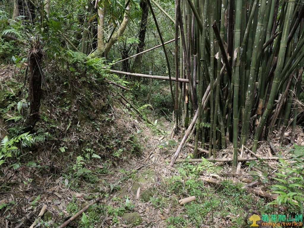 ▲斜向下切往溪谷,從雜木林下至竹叢邊。