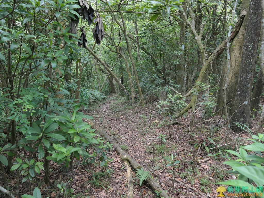 ▲沿溪谷邊山腰路回往礁水坑山南峰三岔路。