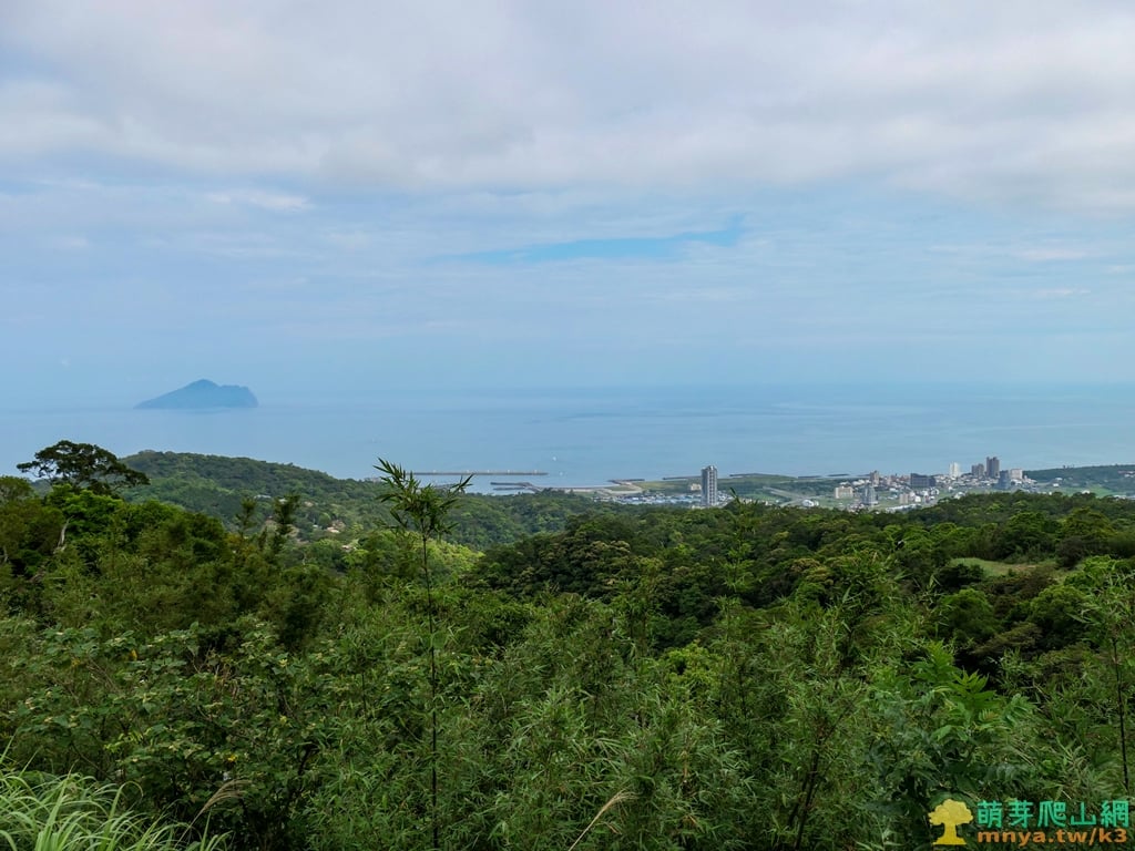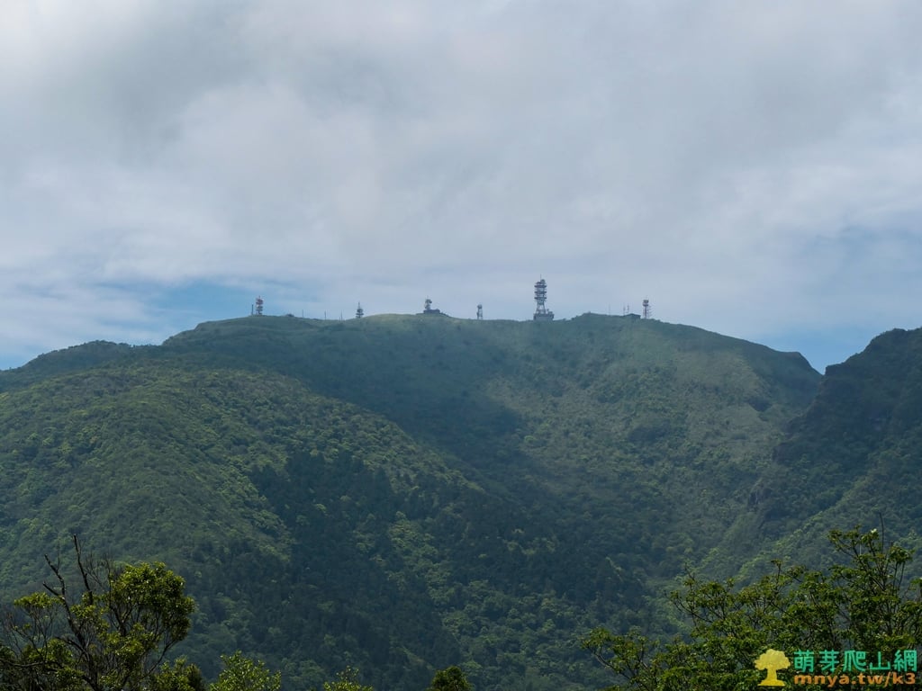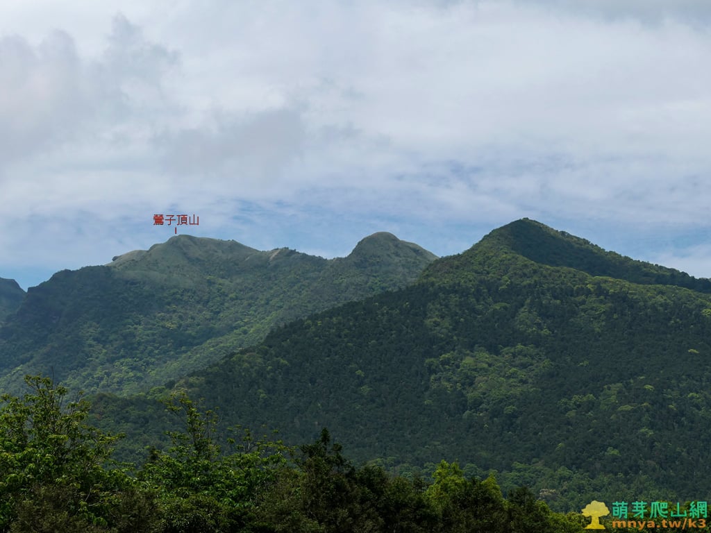 ▲稜線大廣場往北眺望蘭陽五大名山之一的鶯子嶺(942M),以及去年剛造訪過的礁水坑山(629M)。