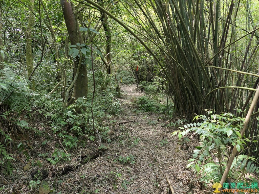 ▲山徑從竹叢左側切至竹叢右側陡上,這段路去年才來過印象還很深。
