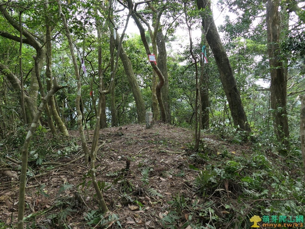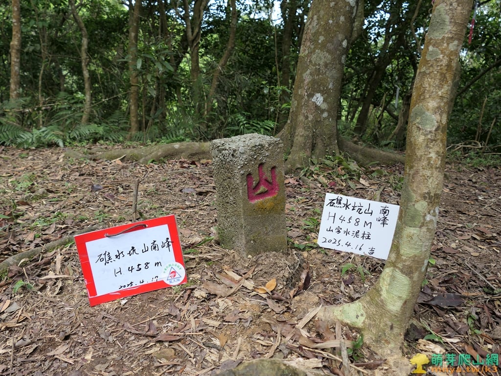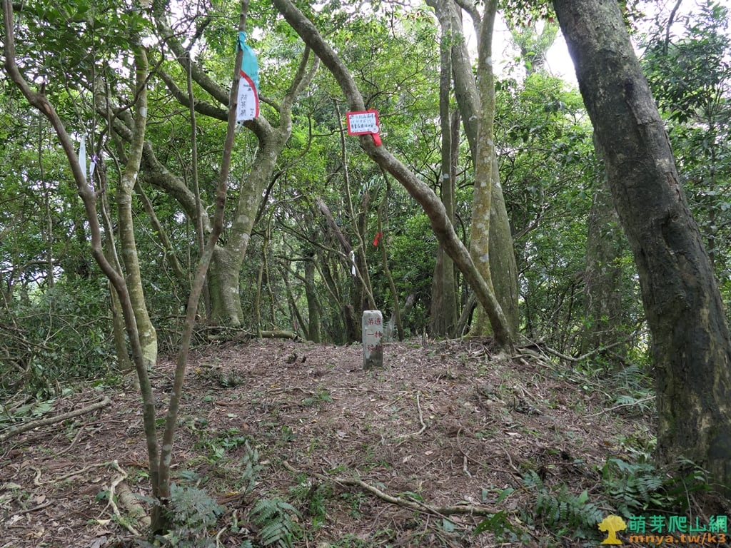 ▲礁水坑山南峰 標高458公尺 山字水泥柱 座標:331618, 2754118;24.890646 121.8160547