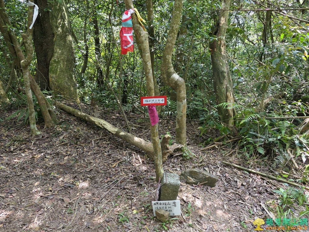 ▲13:14,至礁水坑山南峰三岔路,岔路取左往礁水坑山南峰(山字水泥柱),另外右往礁水坑山;回往頭圍山、大修宮。
