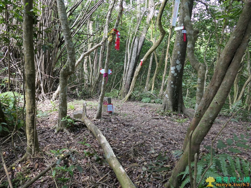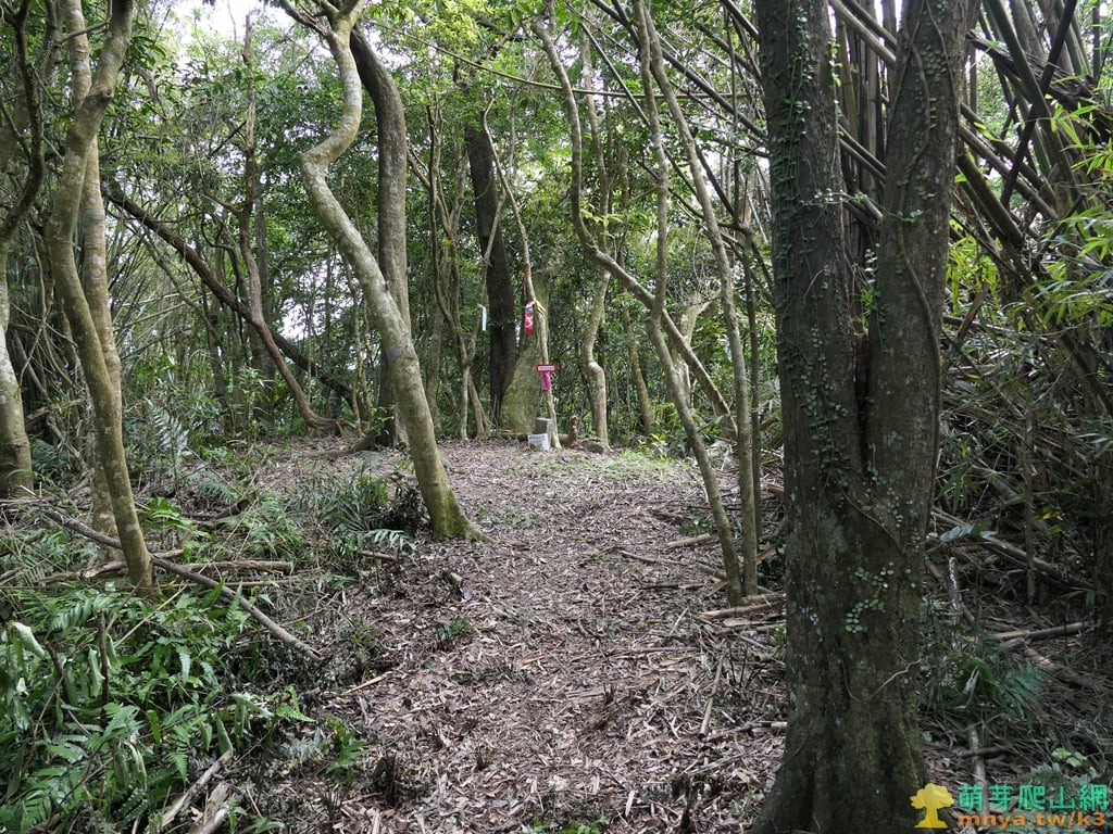 ▲布條標示,此點為近日山友anderw與阿吉新找出的,之後藍天隊應該有來山頂清理得很乾淨。