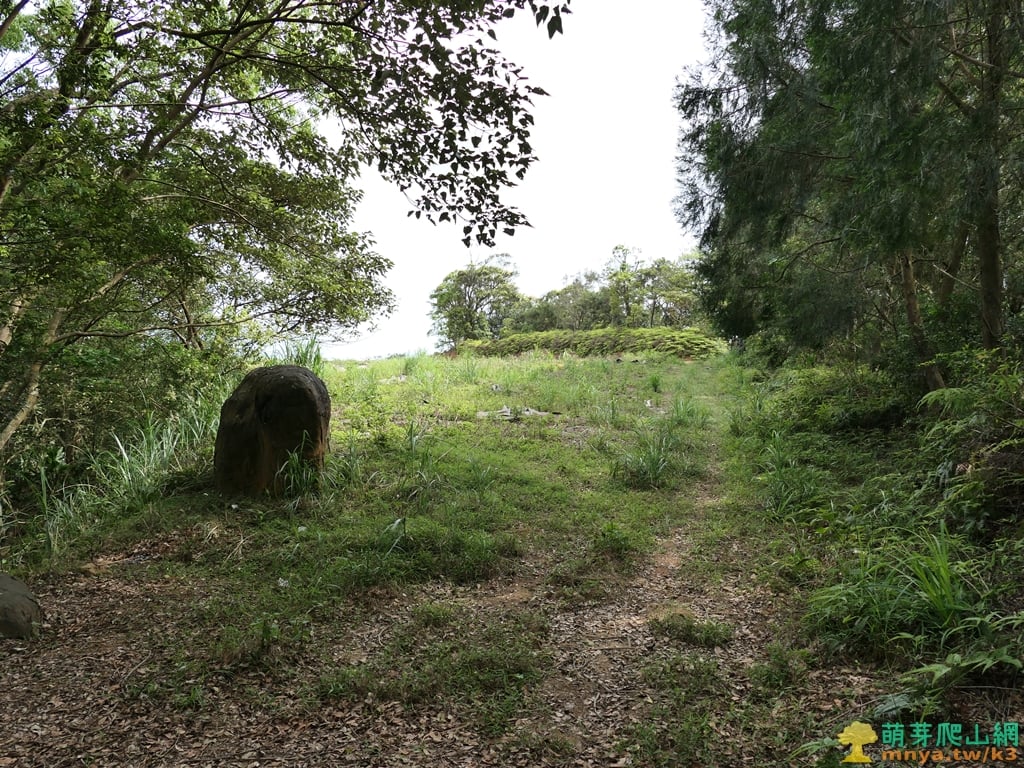 ▲緩下一片寬敞平坦谷地,穿越後順山徑陡上山坡。