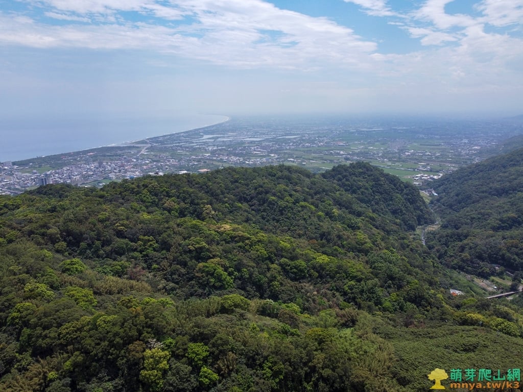 ▲往南拉近眺望蘭陽平原大景,遠看宜蘭市區與羅東市區等。