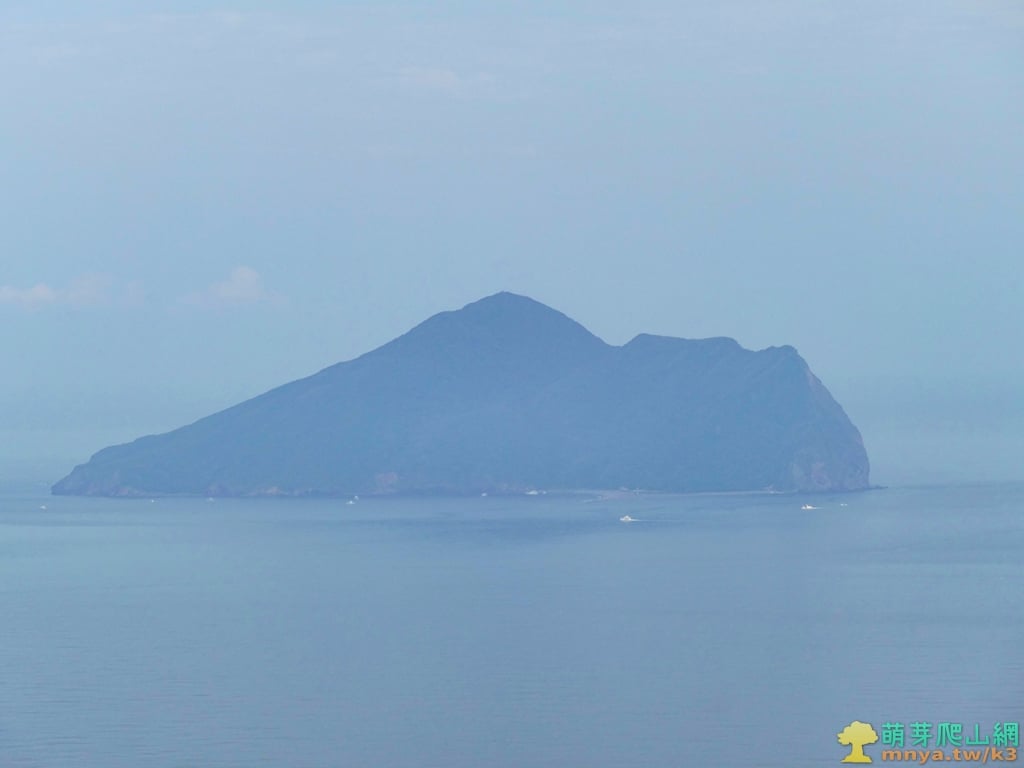 ▲拉近眺望太平洋上的龜山島,最高點為龜山島山(398M)加上兩層觀景臺通稱「401高地」,由烏石港往返的船隻絡繹不絕。