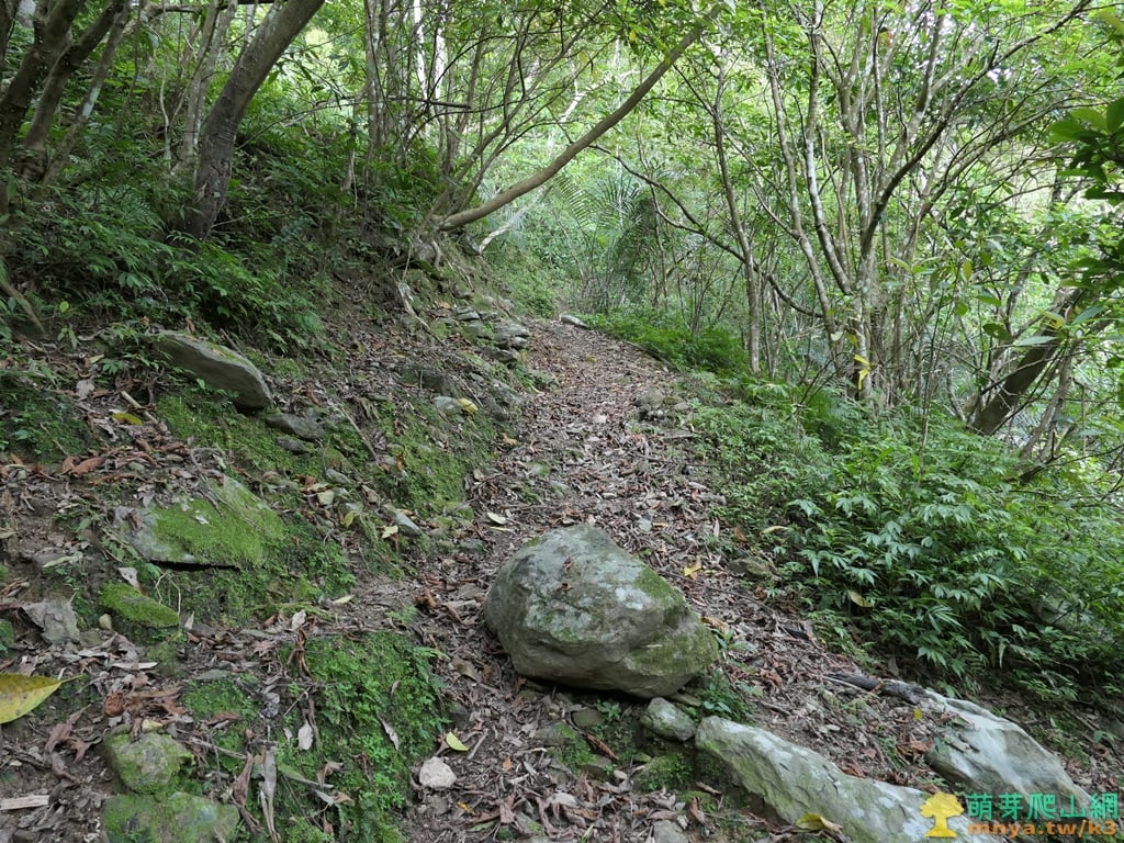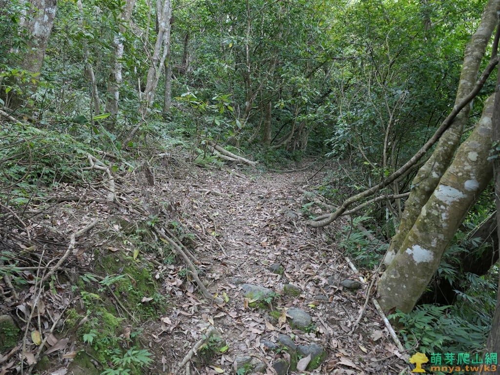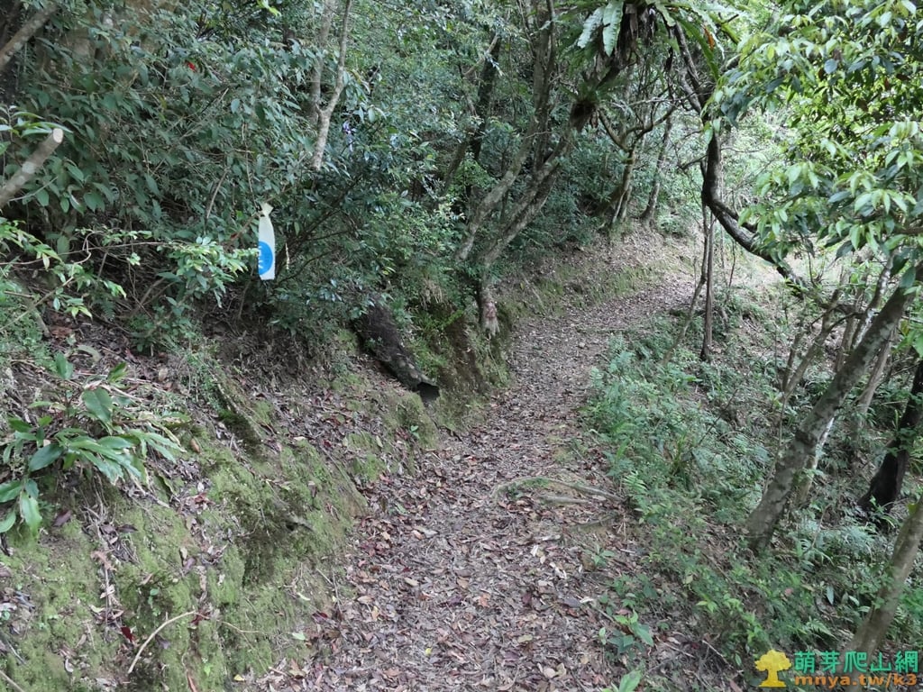 ▲16:55,沿山腰保線路左彎經小支稜取直續行保線路,右下支稜另有山徑可通往礁溪山與毗盧寺。