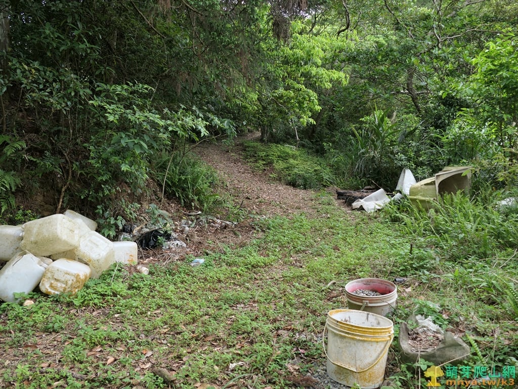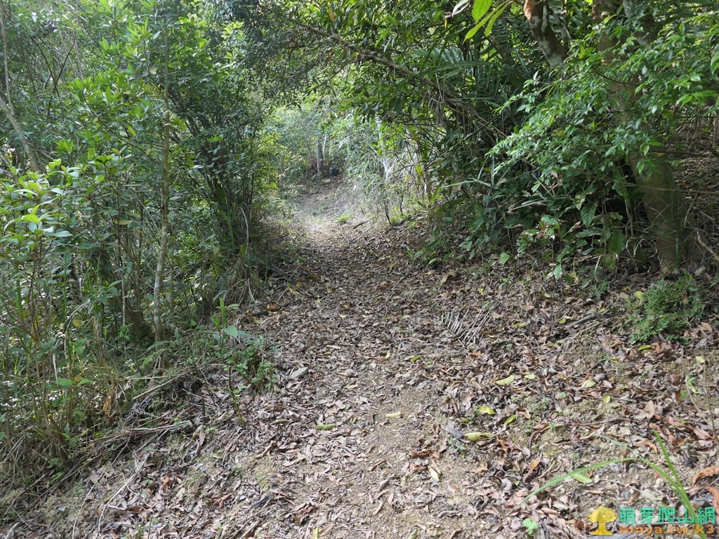 ▲過溪溝後第五處彎道向左,順著雜木林山坡陡上。