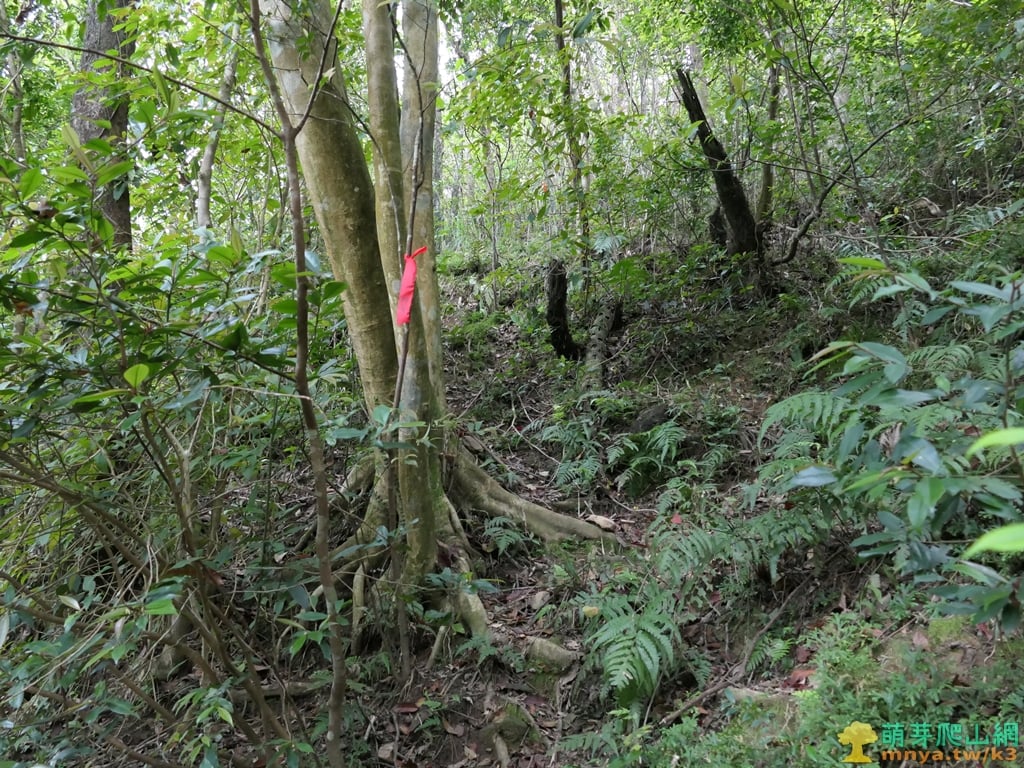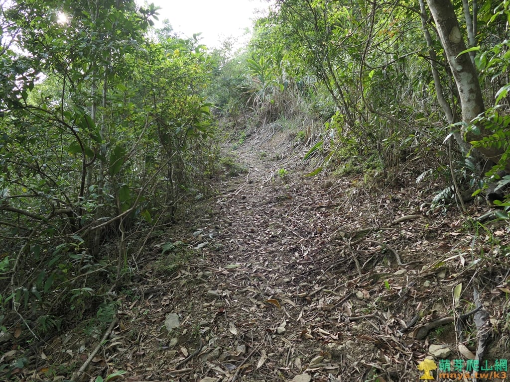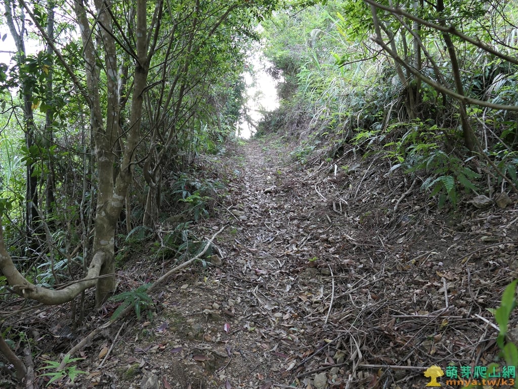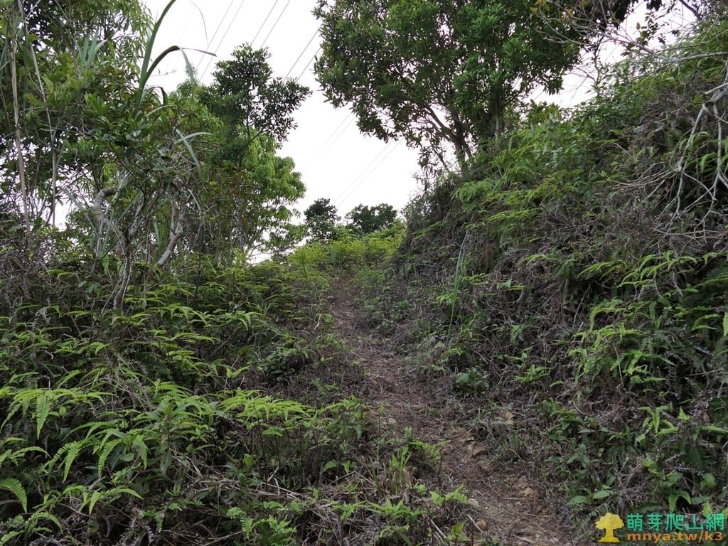 ▲直上雜木叢山坡接往稜線方向,沿途有山友路條可循。