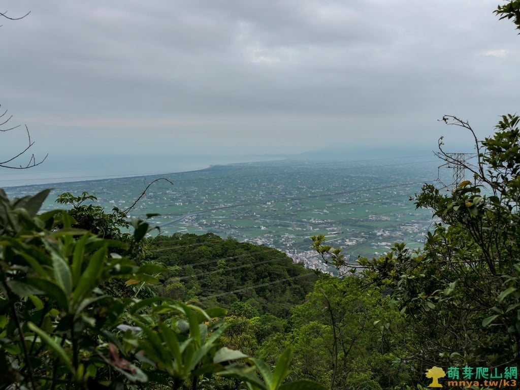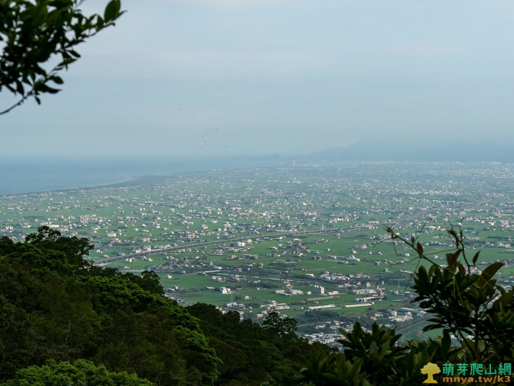 ▲往南俯瞰廣袤的蘭陽平原,右側可見米曲瑤山(225M),最遠可見位於蘇澳的北方澳鼻地區。