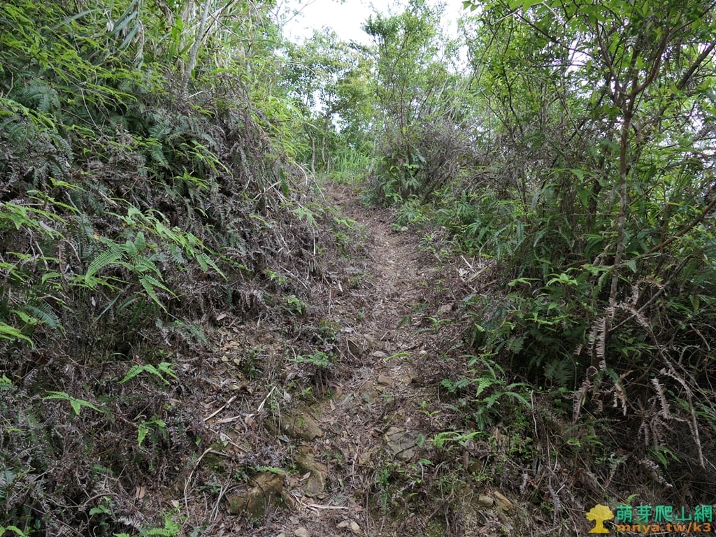 ▲接上稜線後向右上往高點走,路徑還算依稀可循。