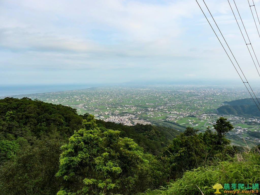 ▲第二處電塔於芒萁山坡上視野頗佳,可向南俯瞰山邊的礁溪市區,遠眺蘭陽平原與太平洋海岸線。