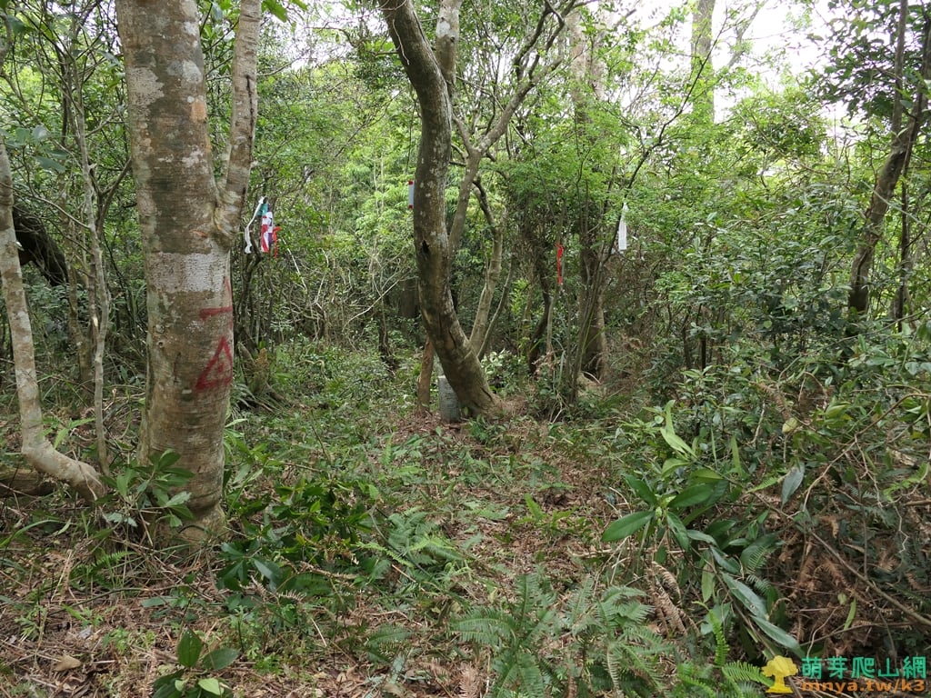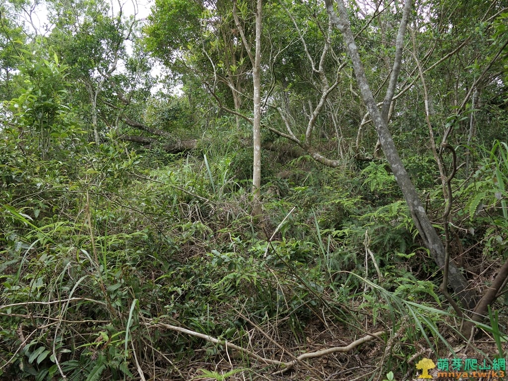 ▲山頂全景,於寬敞山頭的稍低處樹邊,四周矮灌木、雜草、藤蔓清開後還算寬敞。