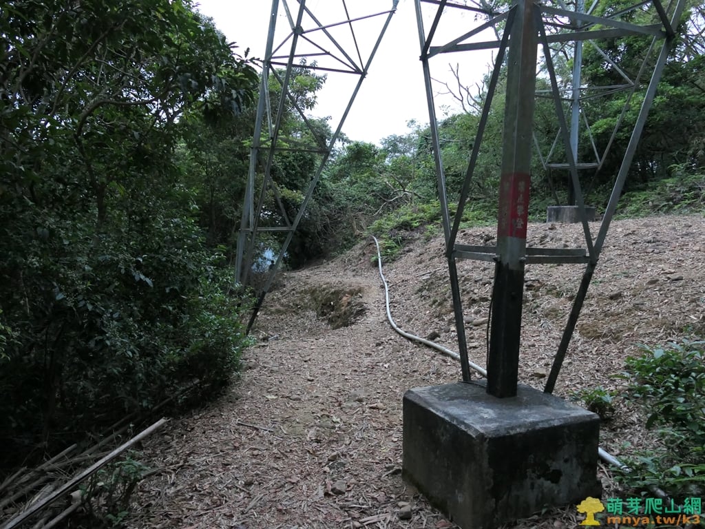 ▲16:18,直上保線路0.3K至第一處電塔(坪林-員山線047),此處高約370公尺,取直穿越電塔續行保線路經竹叢段。