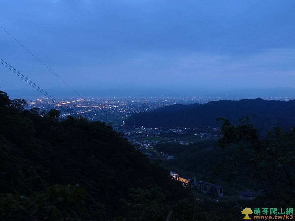 ▲礁溪農場造林地邊緣展望,俯瞰蘭陽平原夜景,差不多過日落時刻平原變得燈火通明。