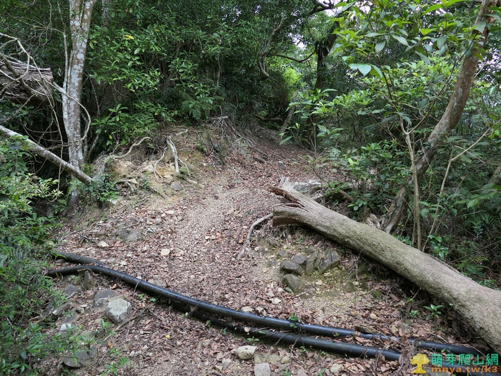 ▲右彎後一段長上坡,往上不遠保線路左出現水管線。