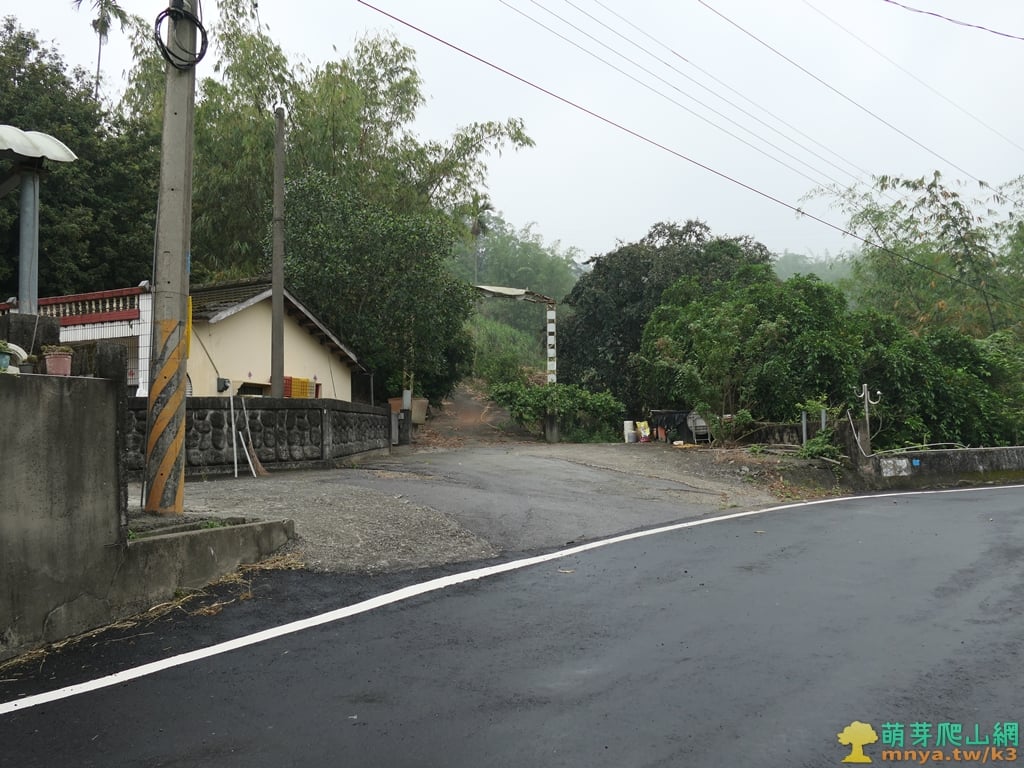 ▲13:44,沿山邊小路行至倆儀双合橋前岔路取左上水泥路,路口高約155公尺,左側為民宅棋山130號(電桿梅林130分20),屋裡的狗會跑出來吠叫,不過屋主很和善。