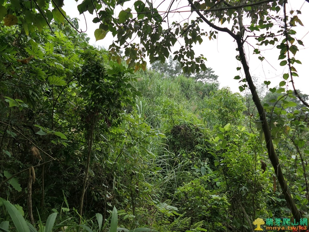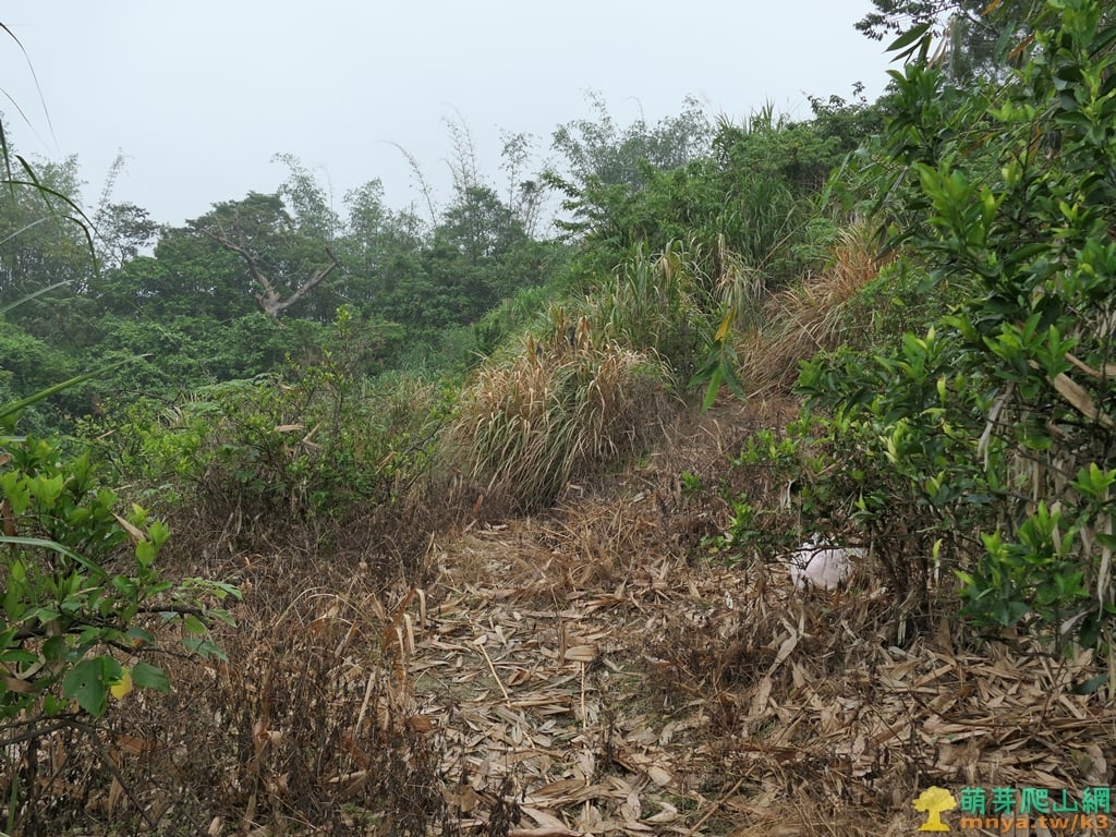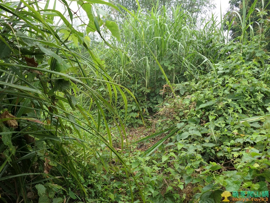 ▲13:58,順稜向上鑽芒草洞,稜線往高點的果園荒廢成芒草原,陡上點距離山頂剩30公尺。