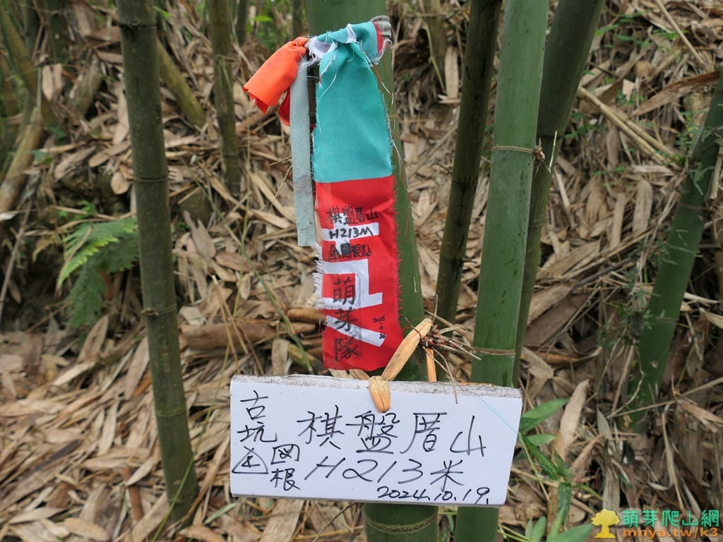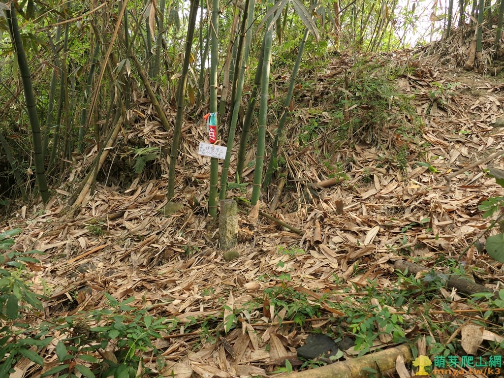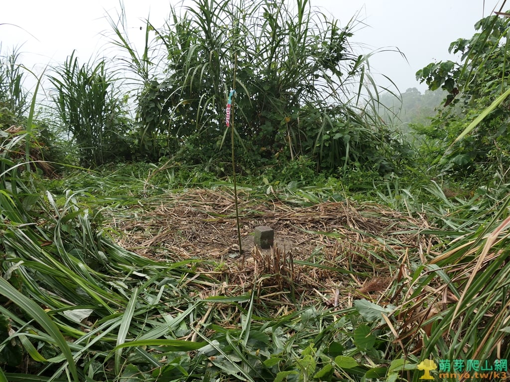 ▲右下切於竹叢邊見到基石,此點其他山友紀錄多是從下方雲216線黃德坑上來的,此行開通兩點之間的路徑,之後不論從哪邊起登都可以選擇一次摸兩顆基石。