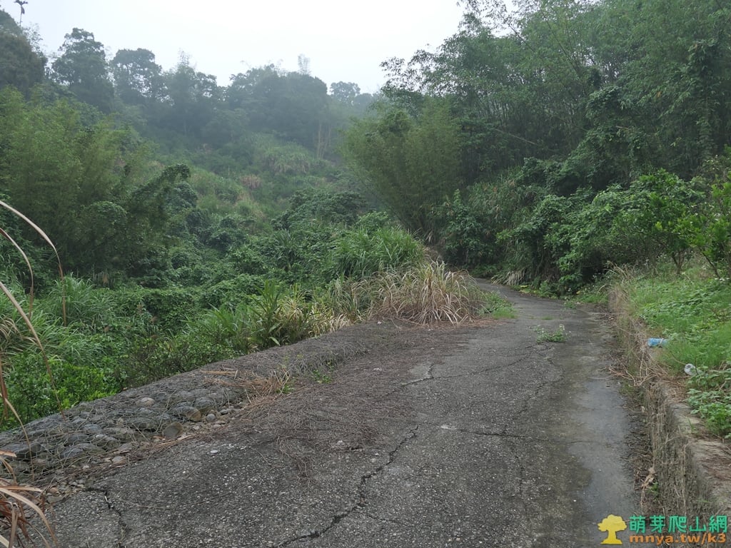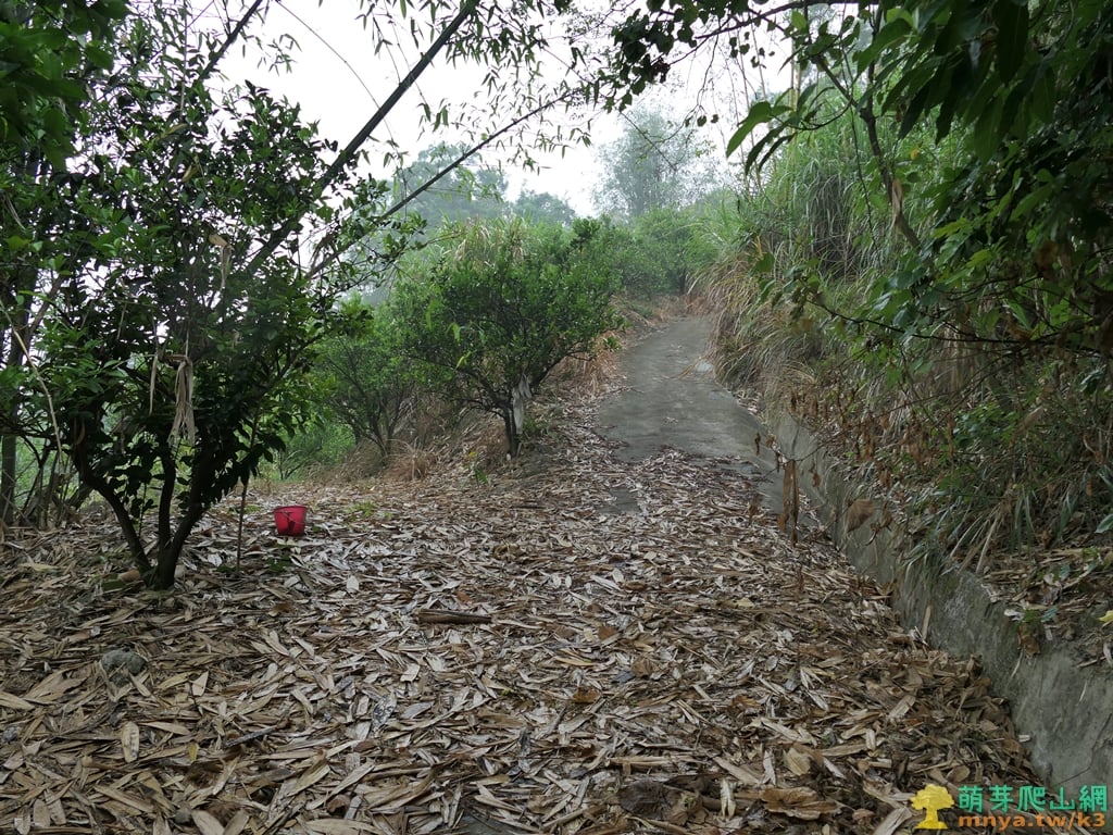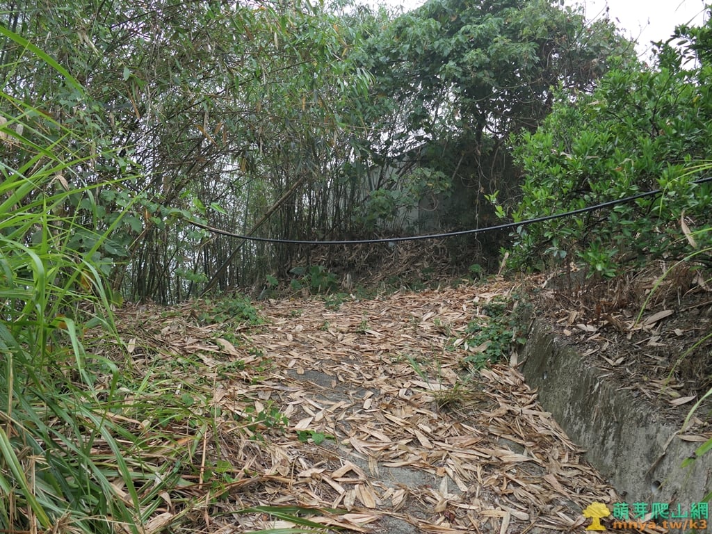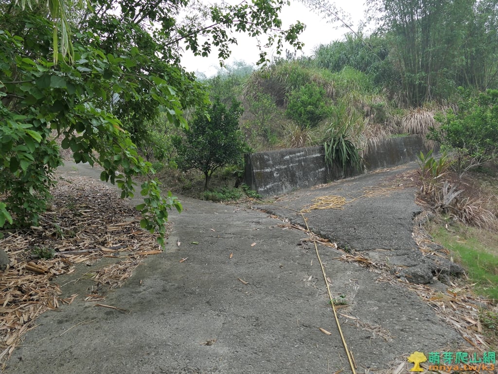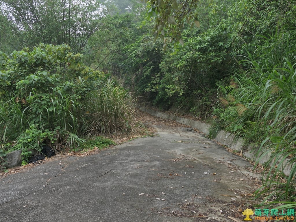 ▲左彎後繼續沿果園邊上行,邊坡芒草高密蓋過半條水泥路。