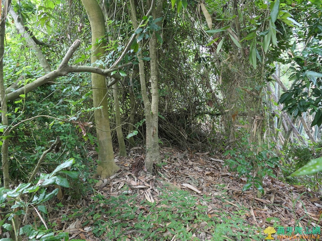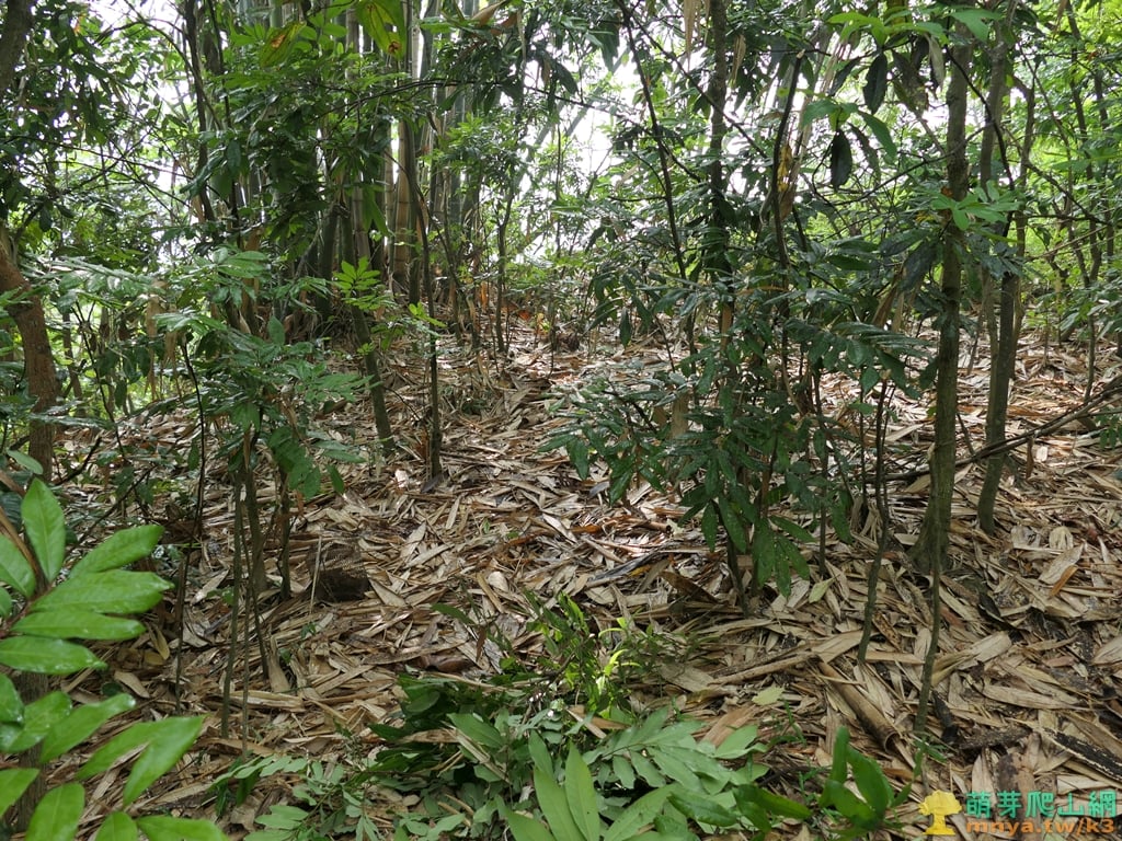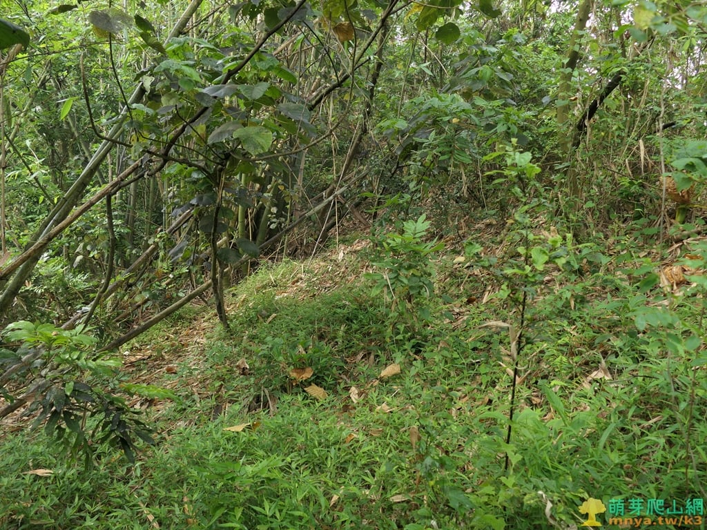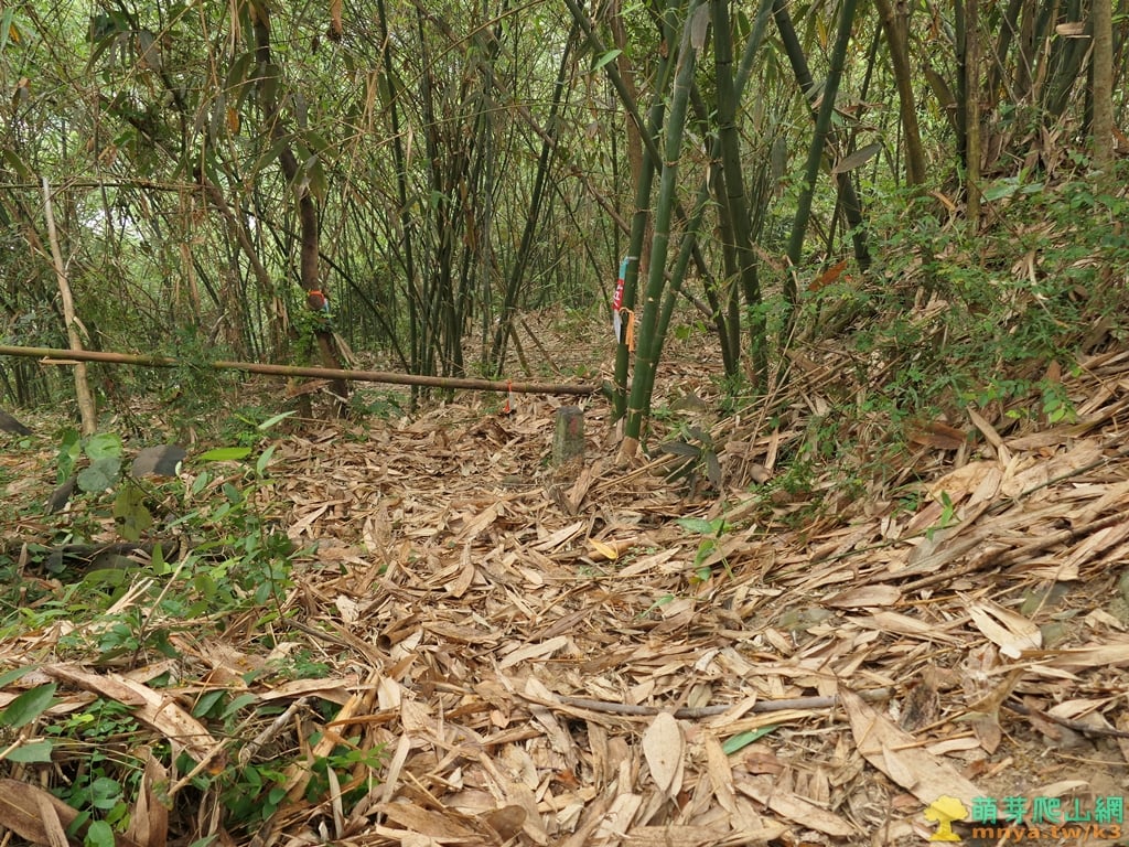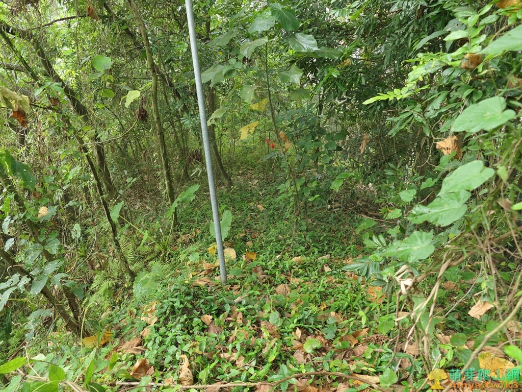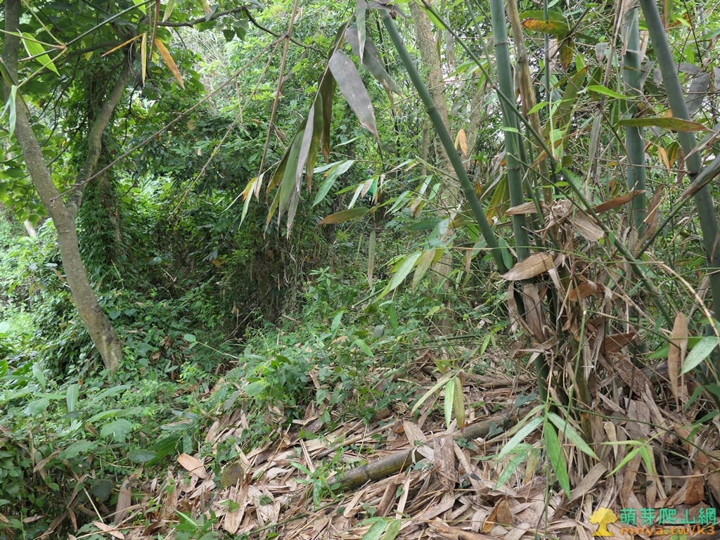 ▲下行後寬稜轉平緩,稜線上有一根鐵桿,感覺隱約有條採筍路可循。