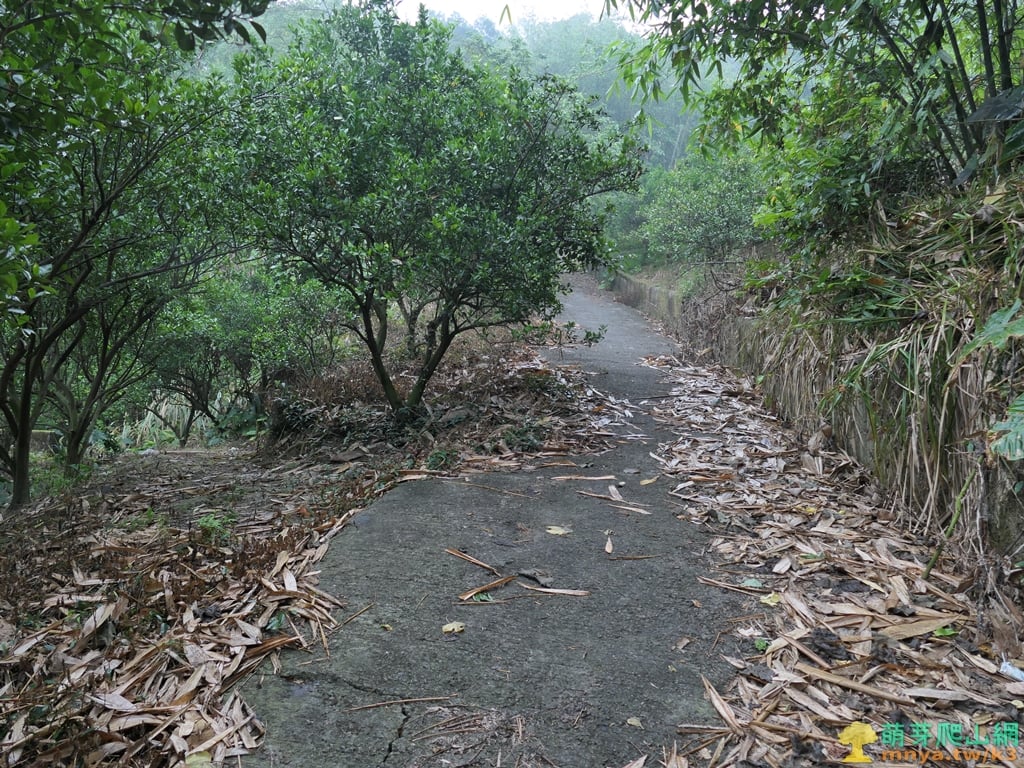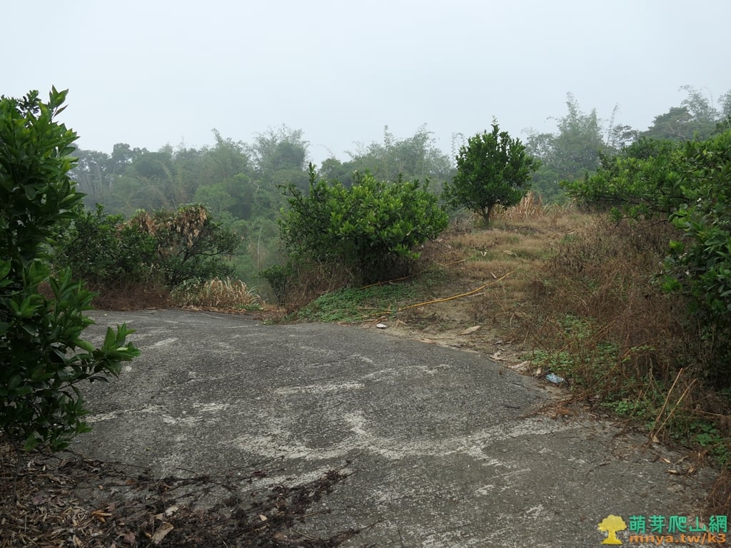 ▲沿山谷邊的水泥路上行,山谷裡的橘子園幾乎已荒廢雜草叢生,道路顯得荒蕪感覺久無人使用。