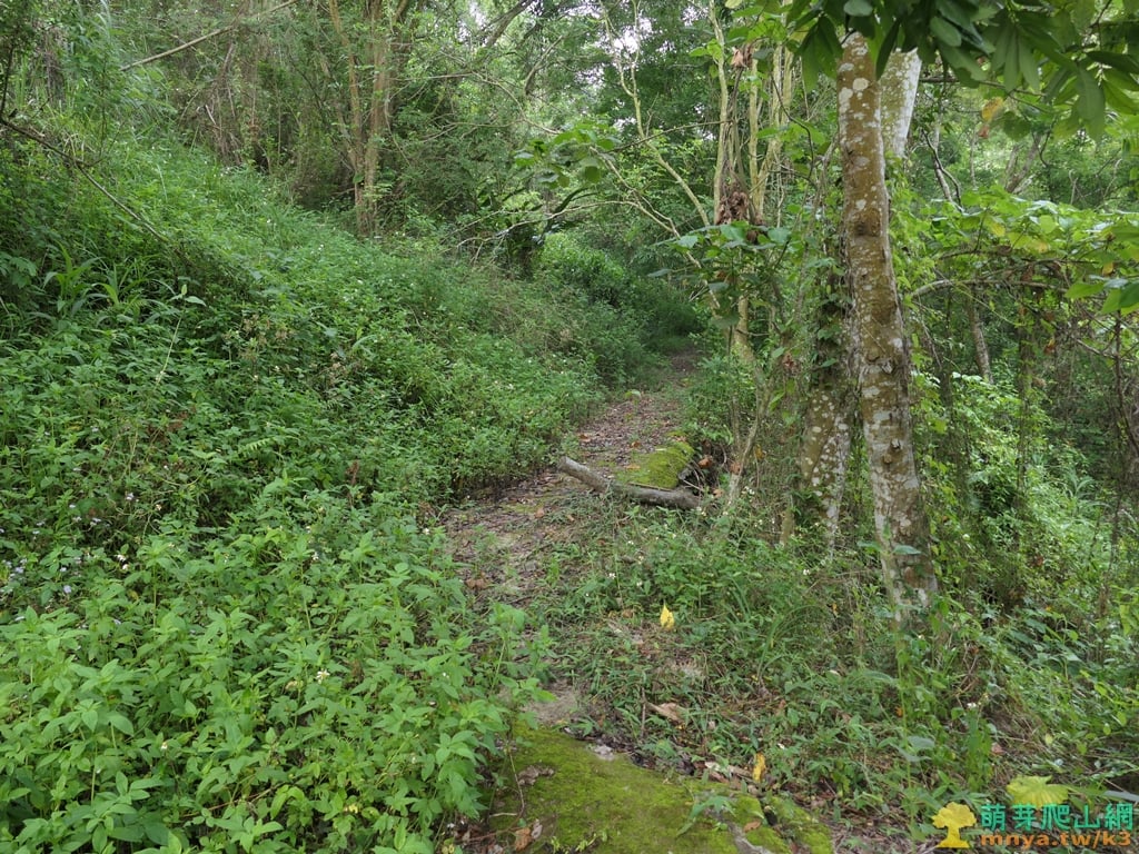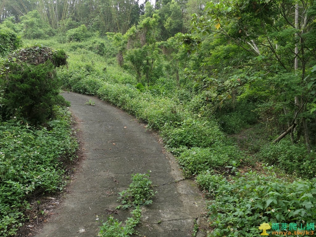 ▲沿山腰小路前進,小路仍有水泥鋪面但幾乎被雜草覆蓋,路幅還有一人通行的寬度。