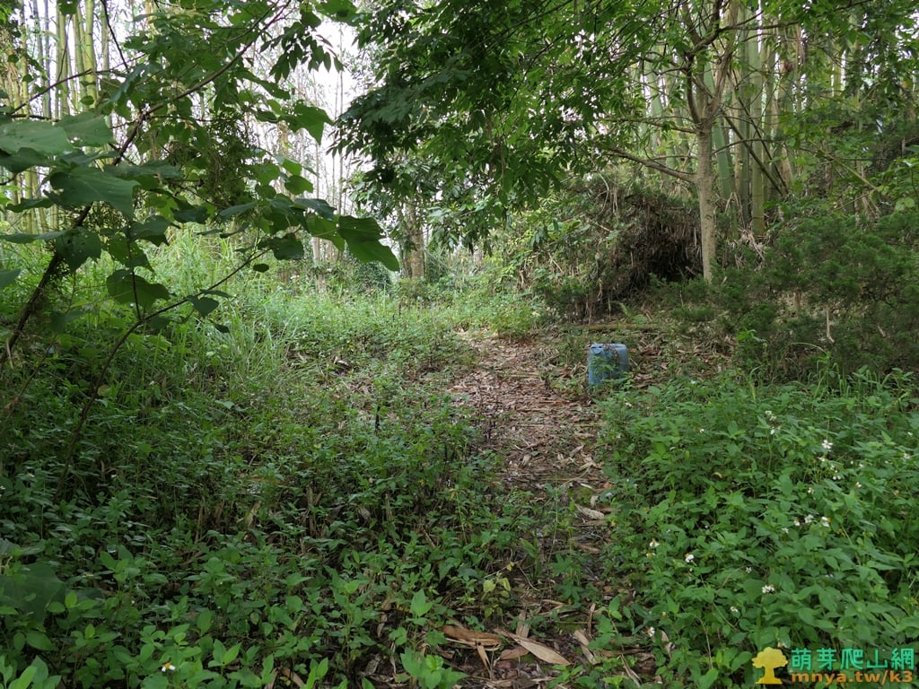 ▲從竹叢邊取左入小路穿越雜草區,鞍部之後就是頗為荒廢的土路了。