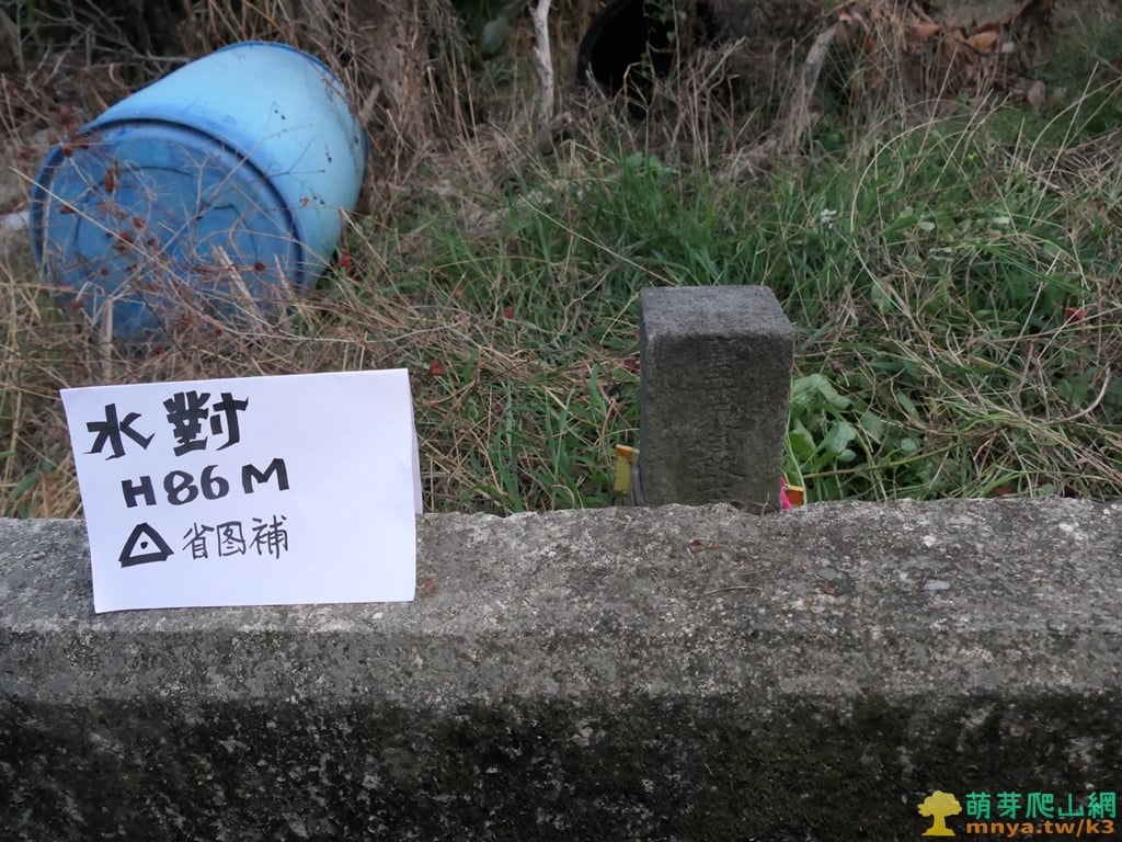 ▲水對 標高86公尺 台灣省政府圖根補點 座標:204652, 2617372;23.6575477 120.5635863