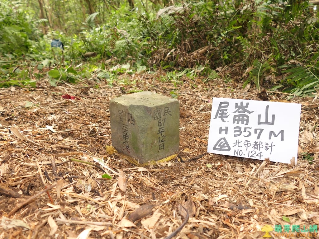 ▲尾崙山 標高357公尺 民國67年12月四等三角點都市計畫處No.124 座標:305765, 2779124;25.1175792 121.5612019