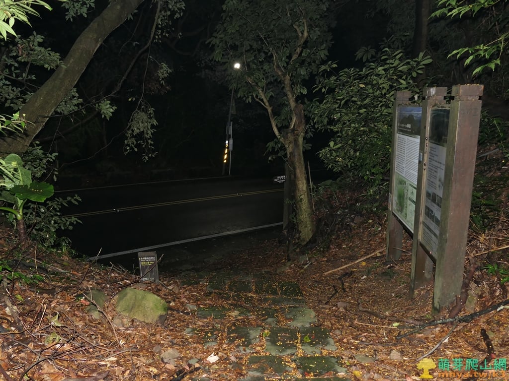 ▲19:08,原路回紗帽路大埔登山口,下山費時25分鐘,回程時間約為上山時間的一半,來回紗帽山總費時2小時15分鐘,為陽明山區大眾化的郊山路線之一,平常假日應有不少山友造訪。