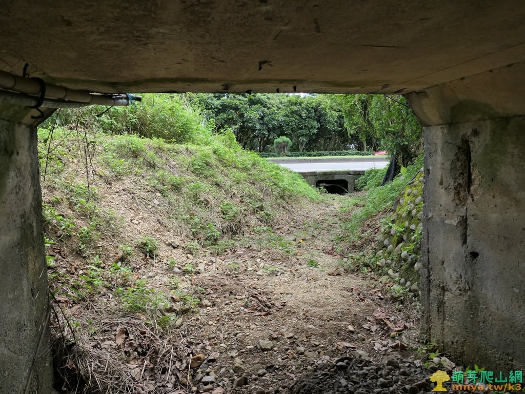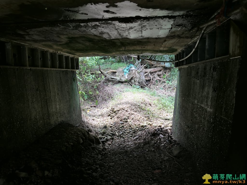 ▲走約30公尺穿越宜蘭線鐵路涵洞後,隨即取右上山坡,涵洞內有陣陣像臭水溝的異味。