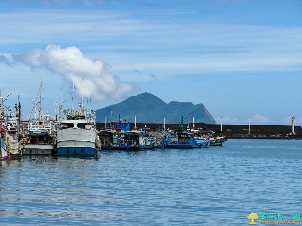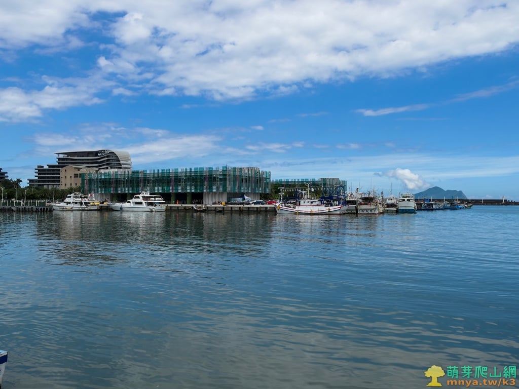 ▲岸邊眺望烏石漁港與宜蘭縣頭城區漁會,遠眺海面上的龜山島。