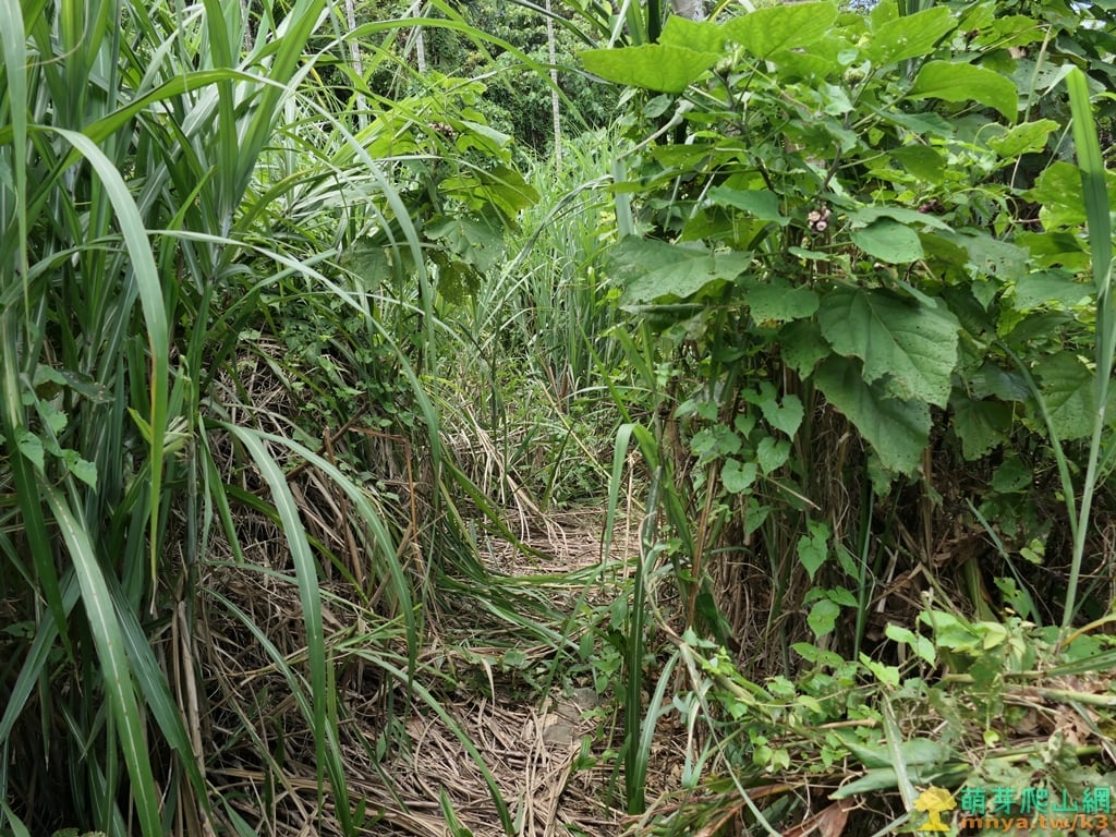 ▲第二處較高平台地為荒廢的檳榔園,山友已從芒草叢中砍出一條小徑可行。