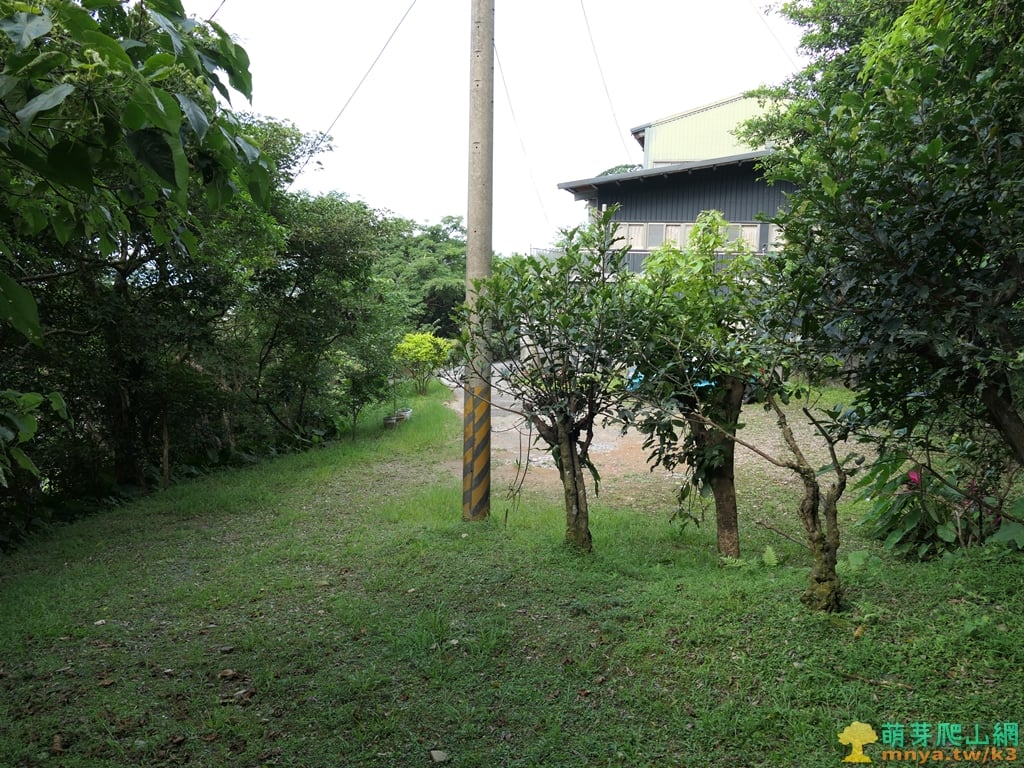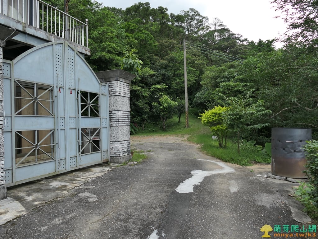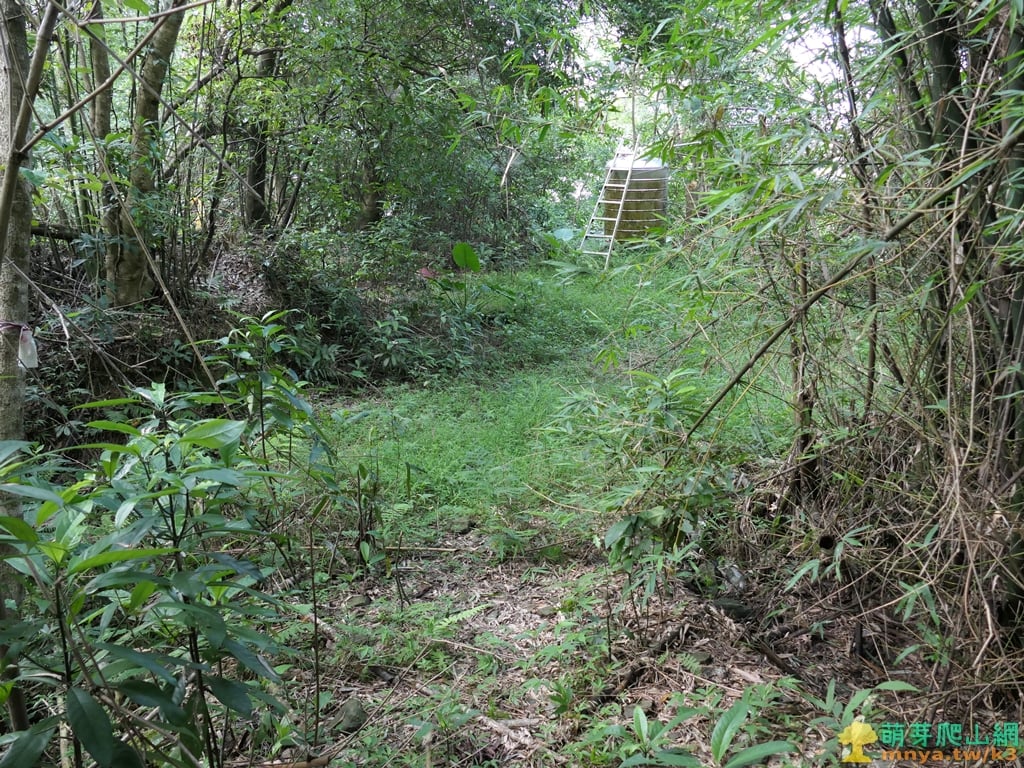 ▲順著山徑左彎上最高點平台,右側有一片廢棄鐵皮。