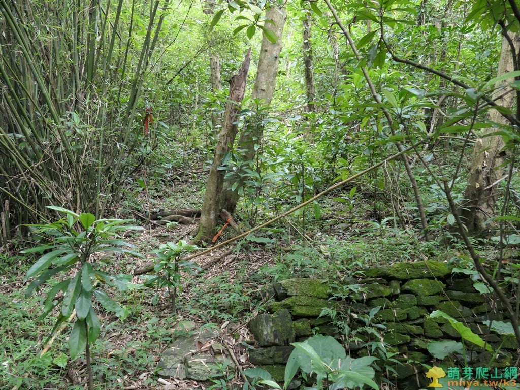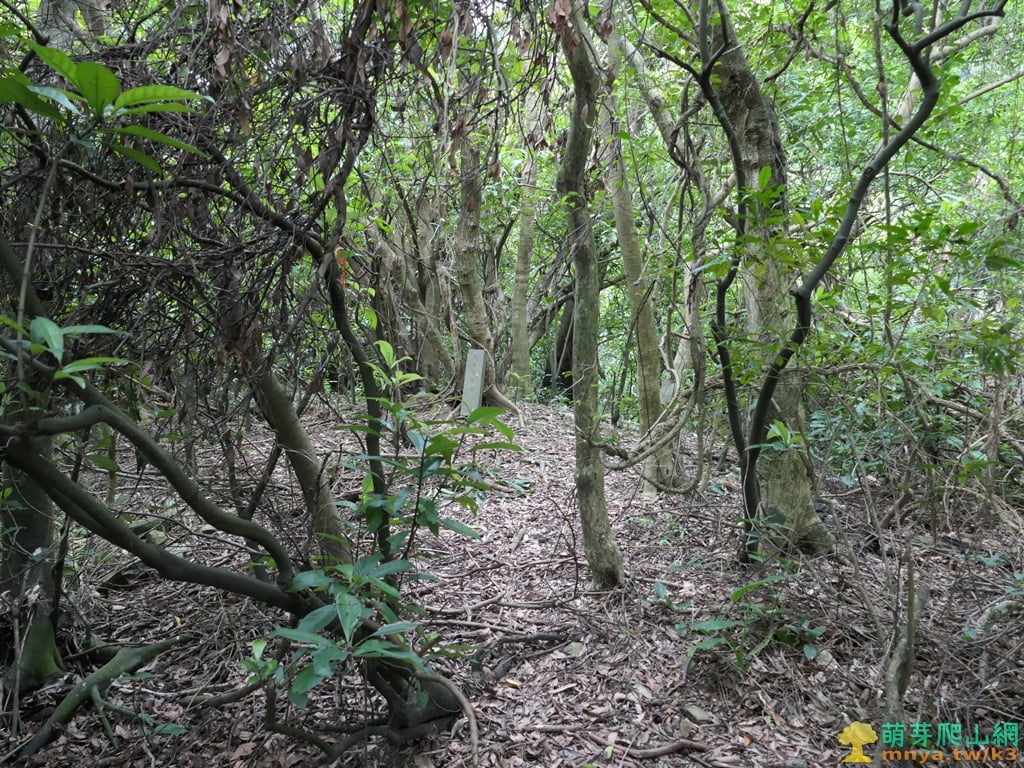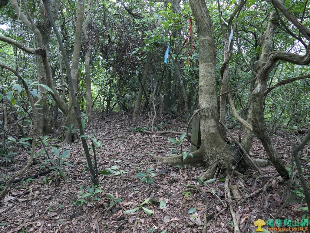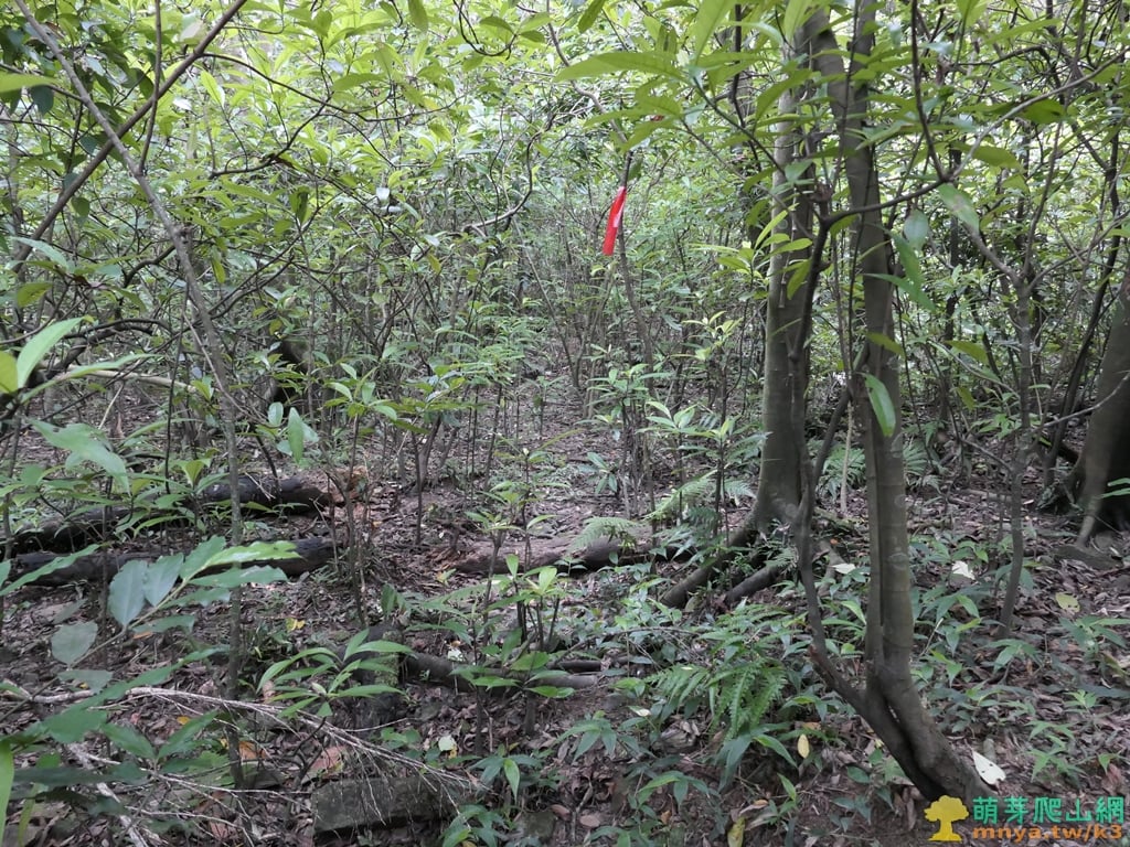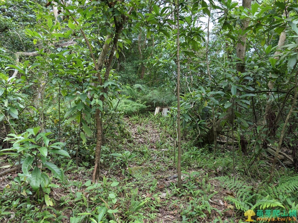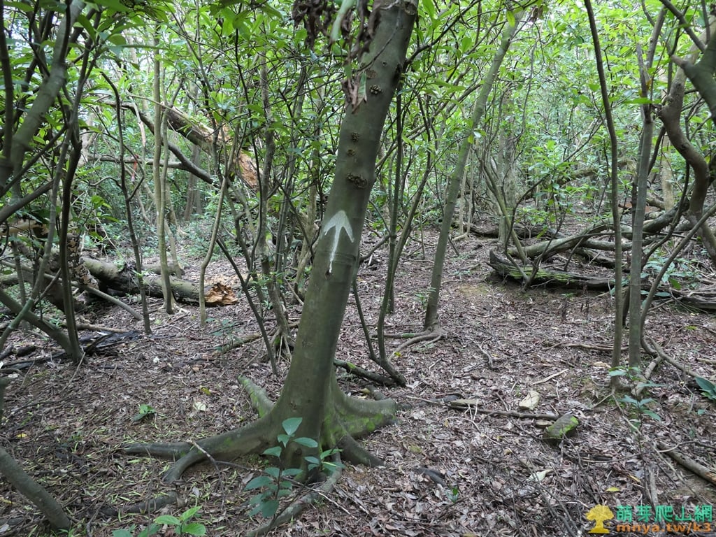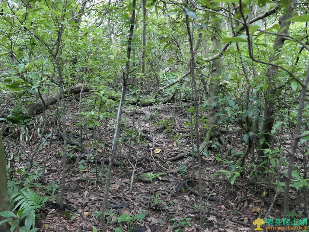 ▲一路循著寬稜緩上,雜木林下植被稀疏,跟著路條走就能一路到山頂。