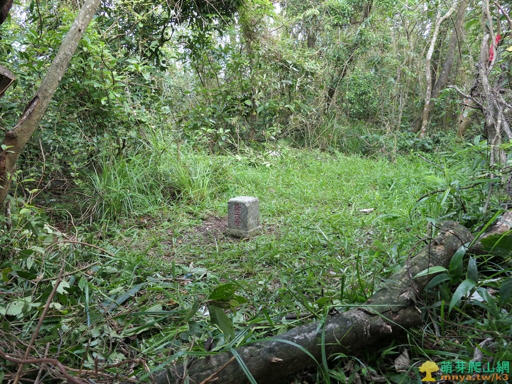 九股山西北峰 標高100公尺 台灣省政府精密導線點 座標:332307, 2723241;24.6118578 121.8210357