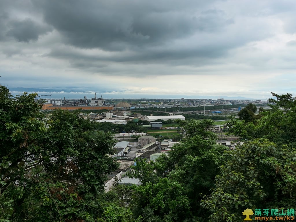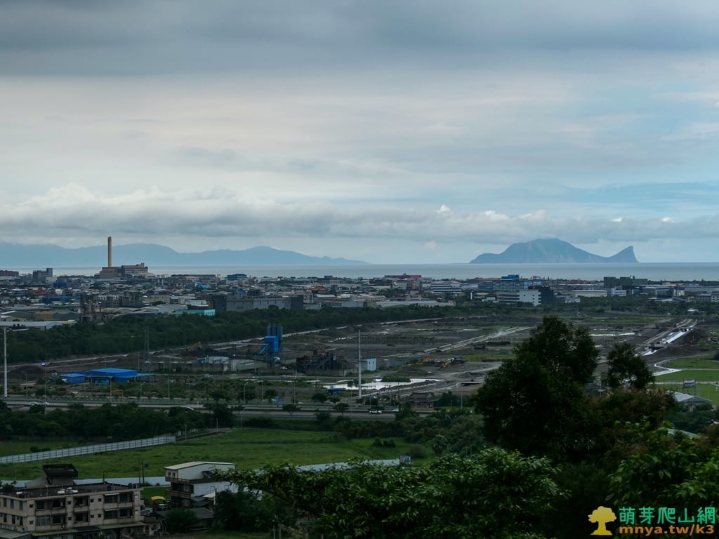 ▲正覺寺前路邊展望,俯瞰北邊廣袤的蘭陽平原,山下可見東鹼公司蘇澳總廠、國道五號、龍德工業區。