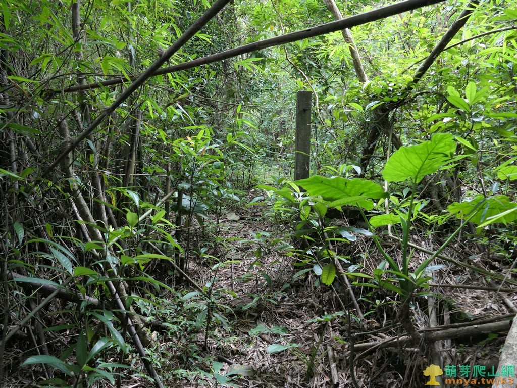 ▲上駁坎邊經右側開墾地取直上山坡,荒廢開墾地邊有圍籬水泥柱。