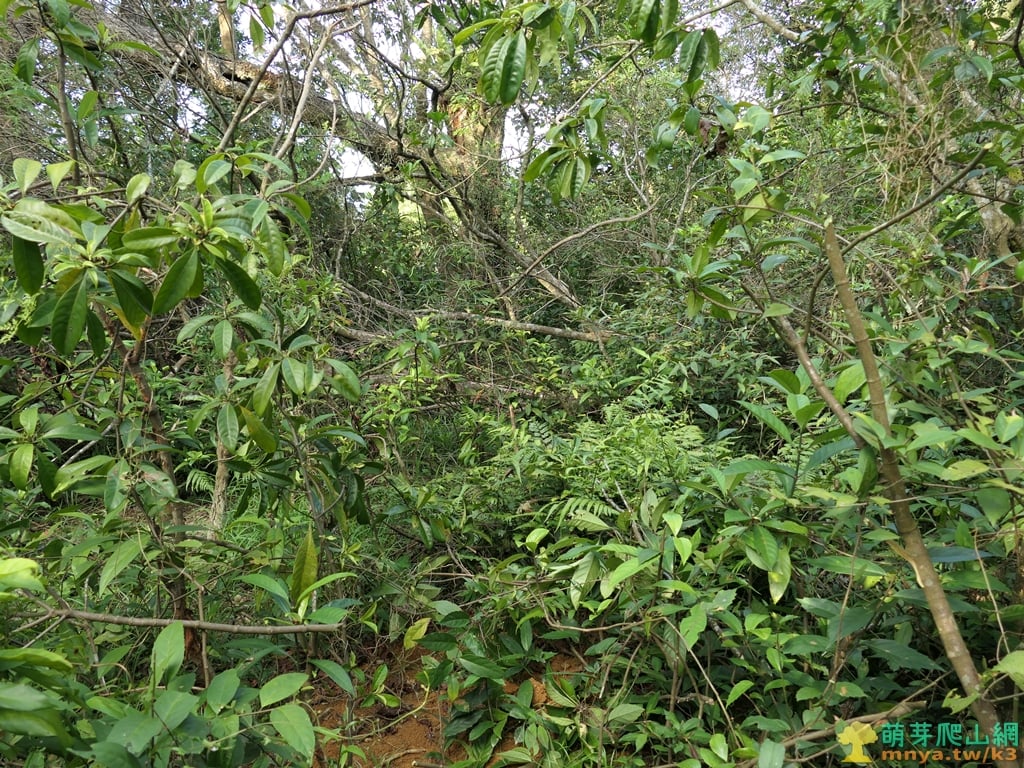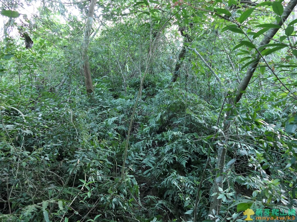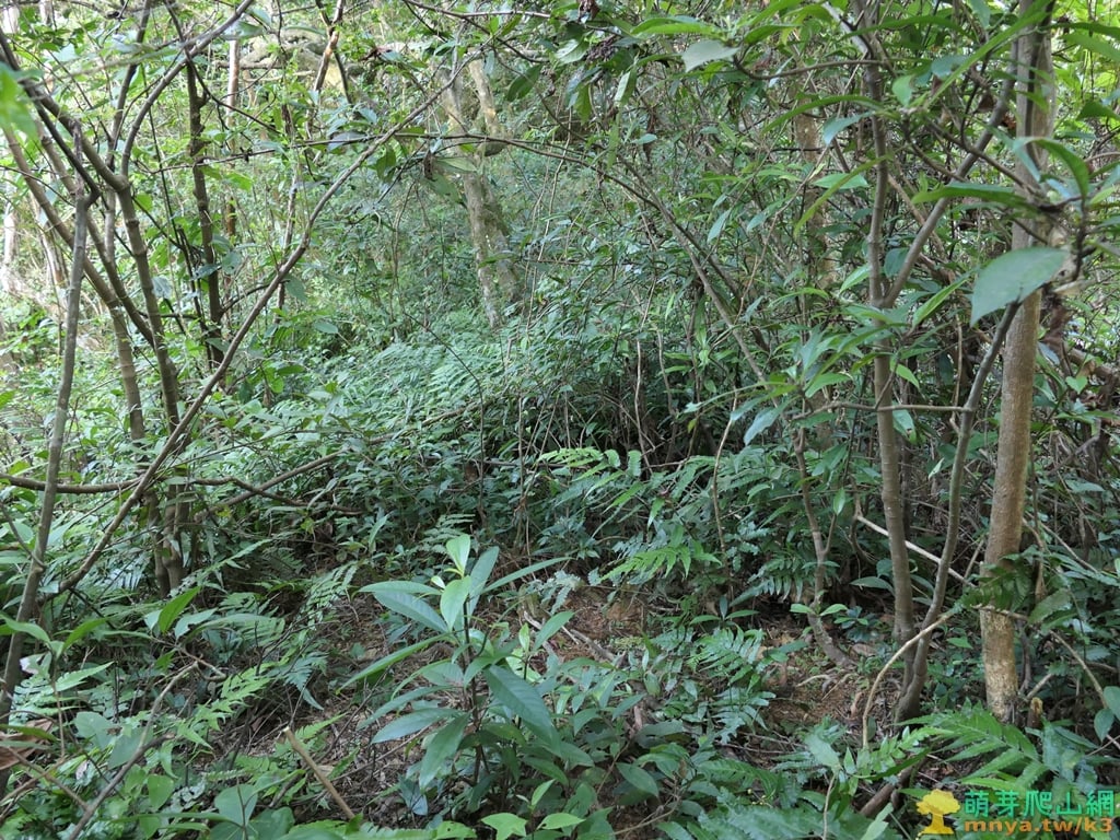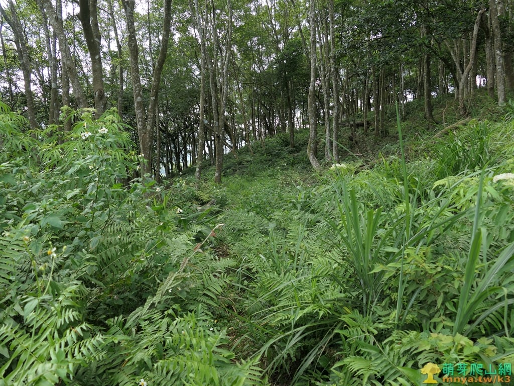 ▲另一角度,剛從海拔一千多公尺涼爽的西德山北峰下來,下至海拔不到三百公尺的郊山氣溫變得很悶熱,幸好沿途走來蚊蟲不多。