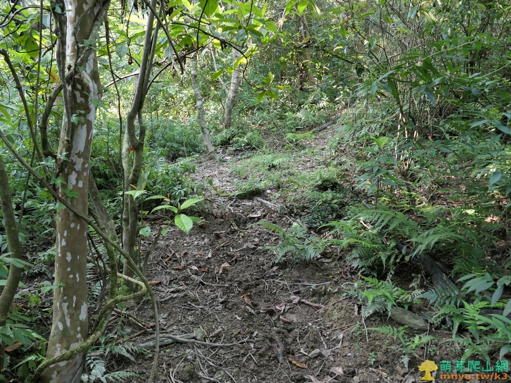 ▲左入小徑進入造林地,先沿山坡邊前行再向右上山坡(由西北轉北)。