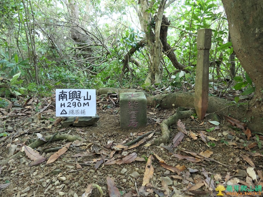 ▲南興山 標高290公尺 總督府圖根補點 座標:327460, 2723649;24.6157927 121.7731942
