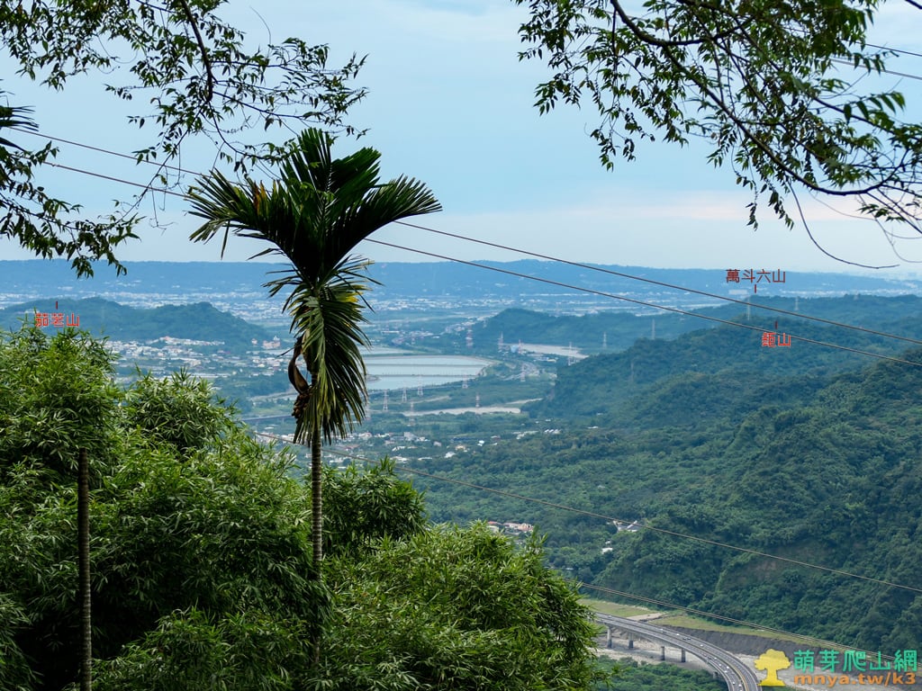 ▲彎道處往西北邊俯瞰國道六號高架橋,對面為九九峰自然保留區,可見九九峰最高峰(779M)。