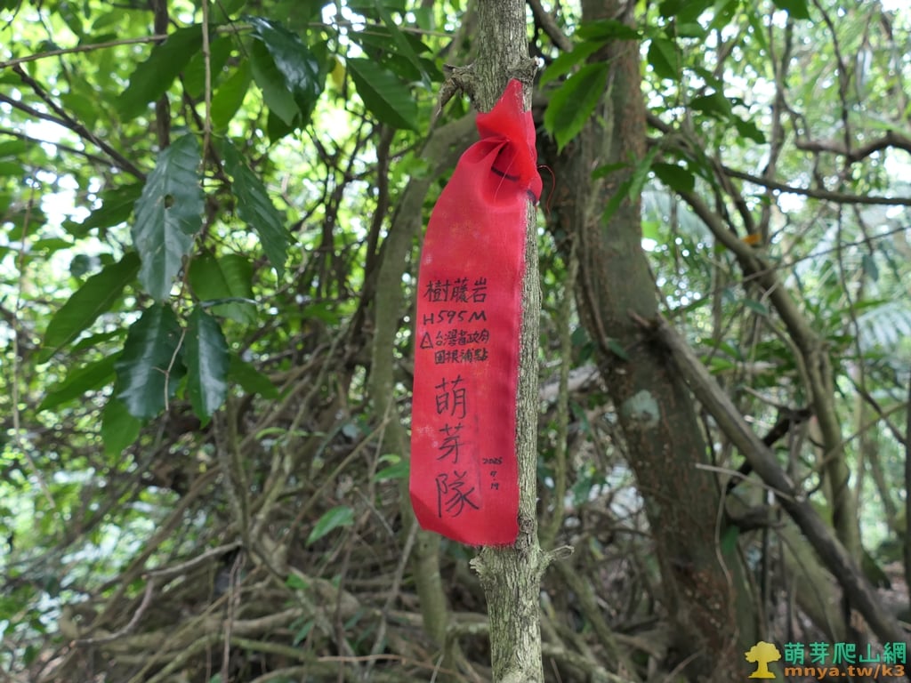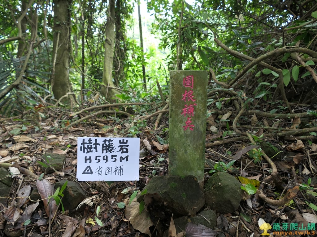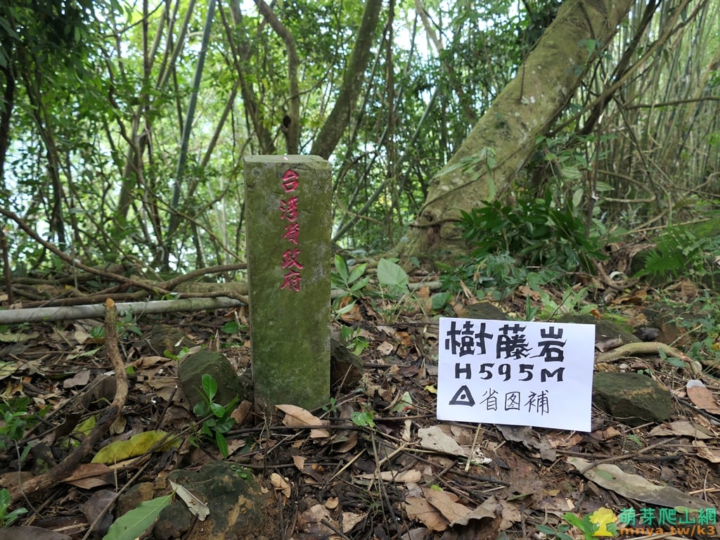 ▲樹藤岩 標高595公尺 台灣省政府圖根補點 座標:229811, 2653120;23.9808446 120.8097489