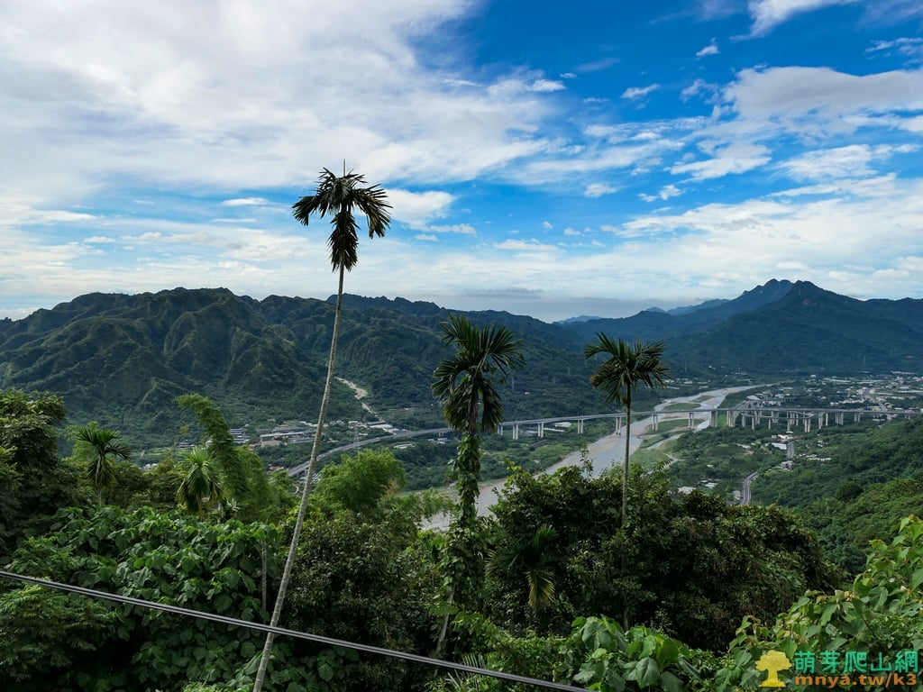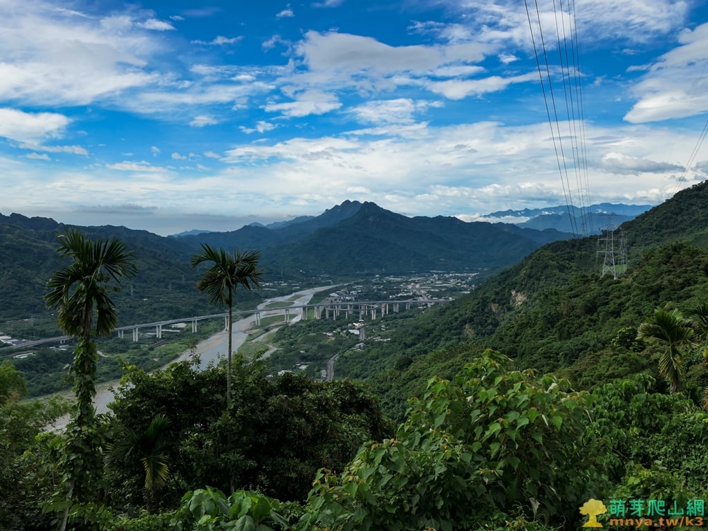 ▲往西北邊俯瞰烏溪與溪畔的國道六號高架橋,對面即九九峰自然保留區,可見九九峰最高峰(779M)。