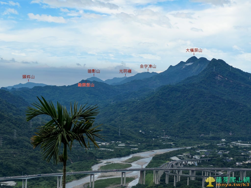 ▲往北俯瞰烏溪與國道六號國姓交流道,這個角度正好對應後方的大橫屏山(1206M)。